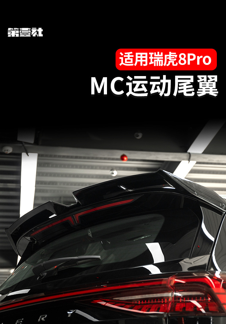 Upgrade your Chery Tiggo 8 Pro with this glossy black MC style rear spoiler. Drill-free installation and durable finish enhance both aerodynamics and style.