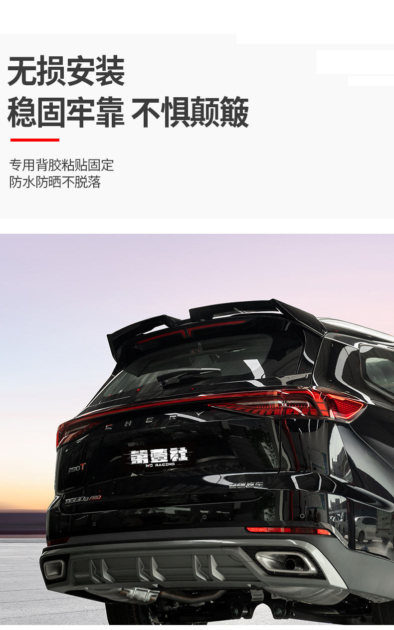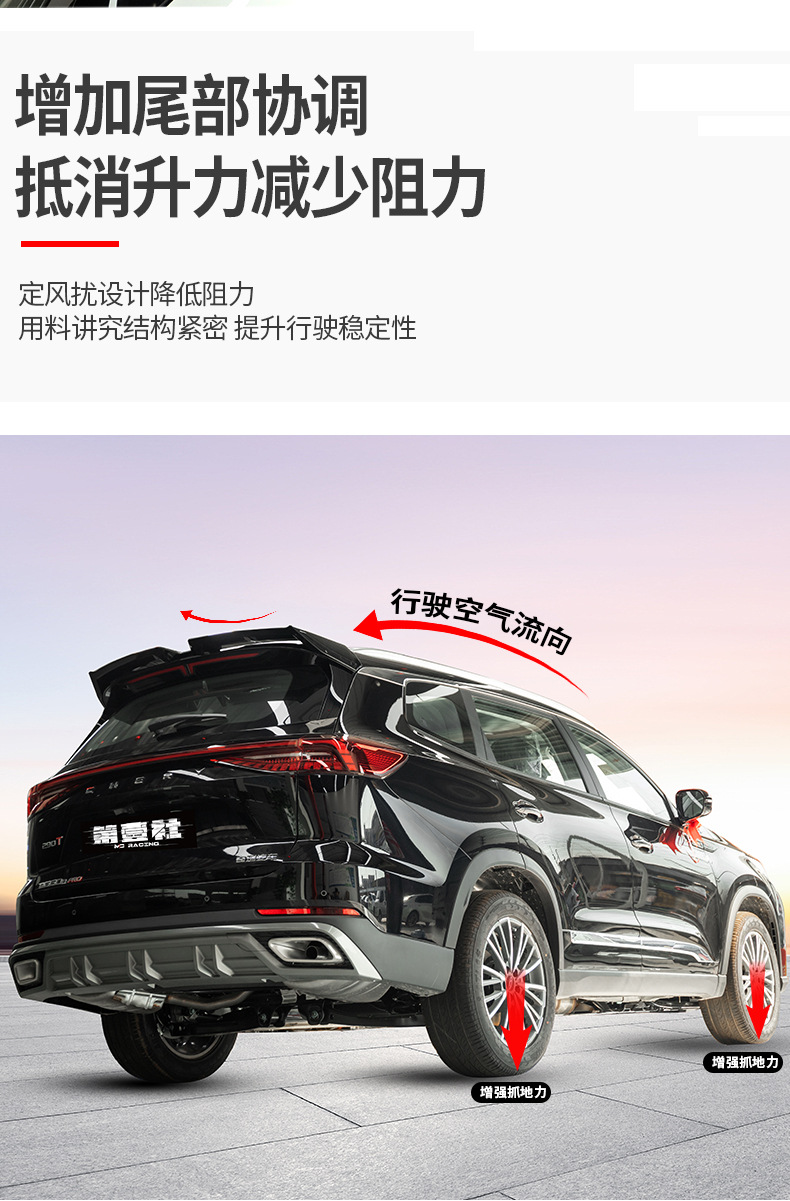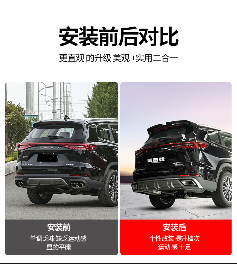 - Custom fit aerodynamic design specifically tailored for Chery Tiggo 8 Pro and 8 Plus Max models to enhance vehicle stability.