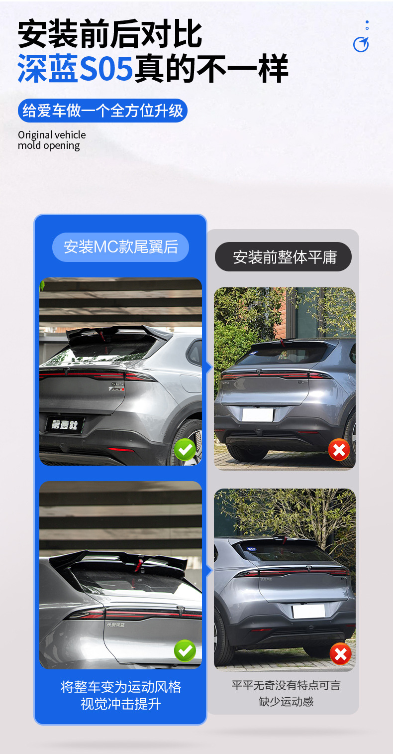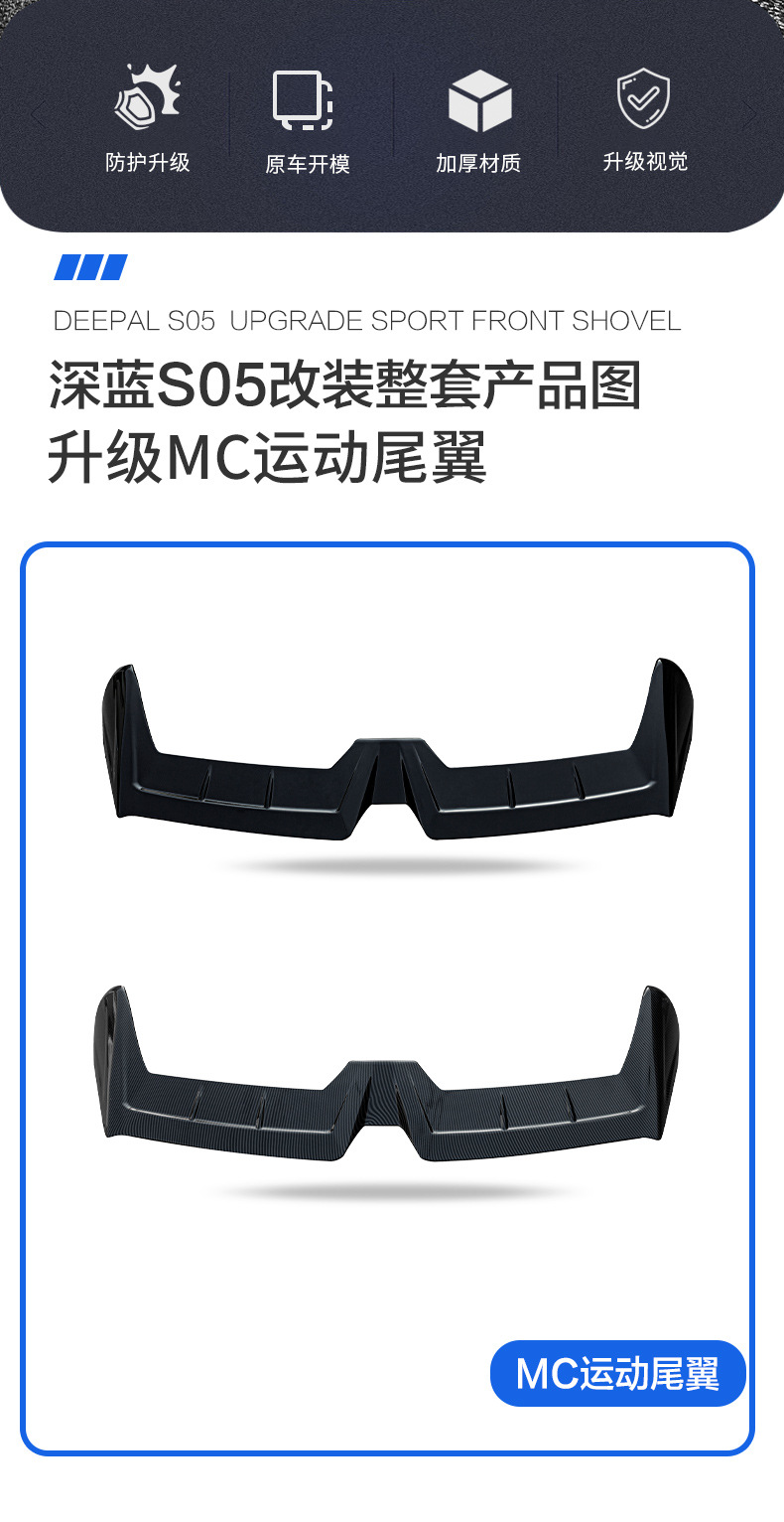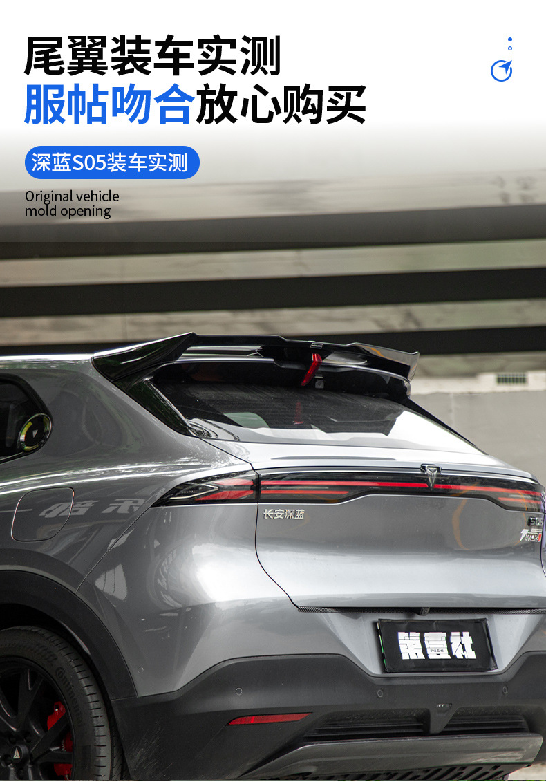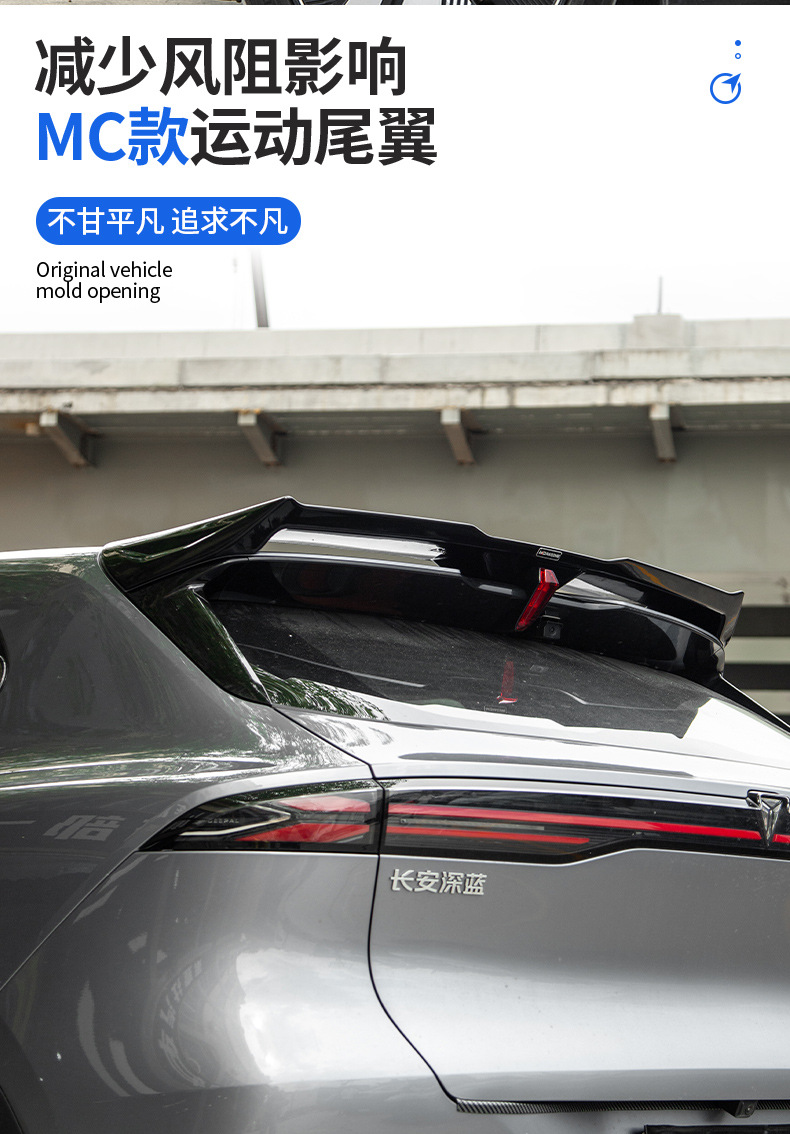 Upgrade your Changan Deepal S05 with this MC style rear roof spoiler. Featuring a sleek black finish, it enhances aerodynamics and sportiness. Easy to install.