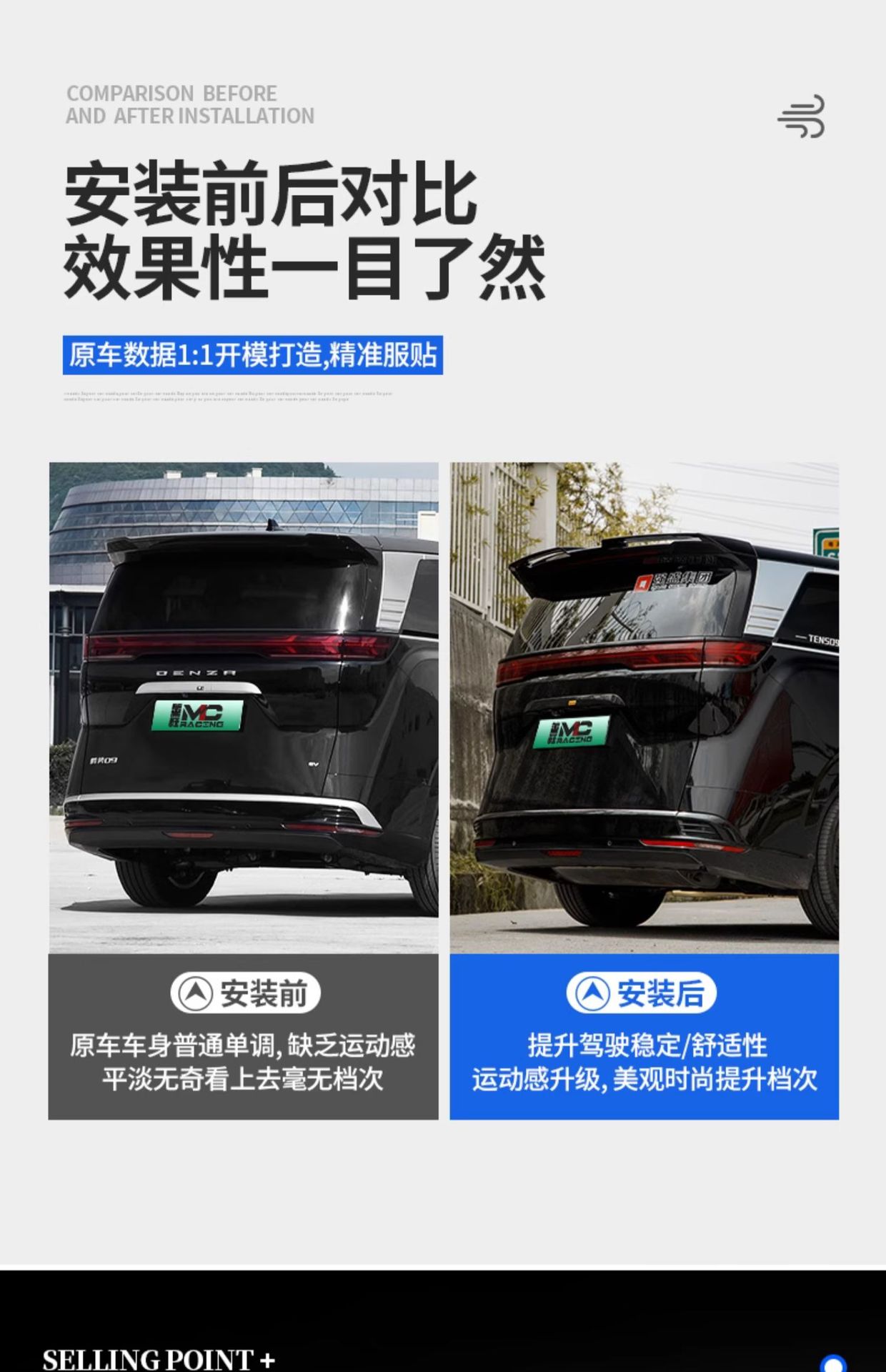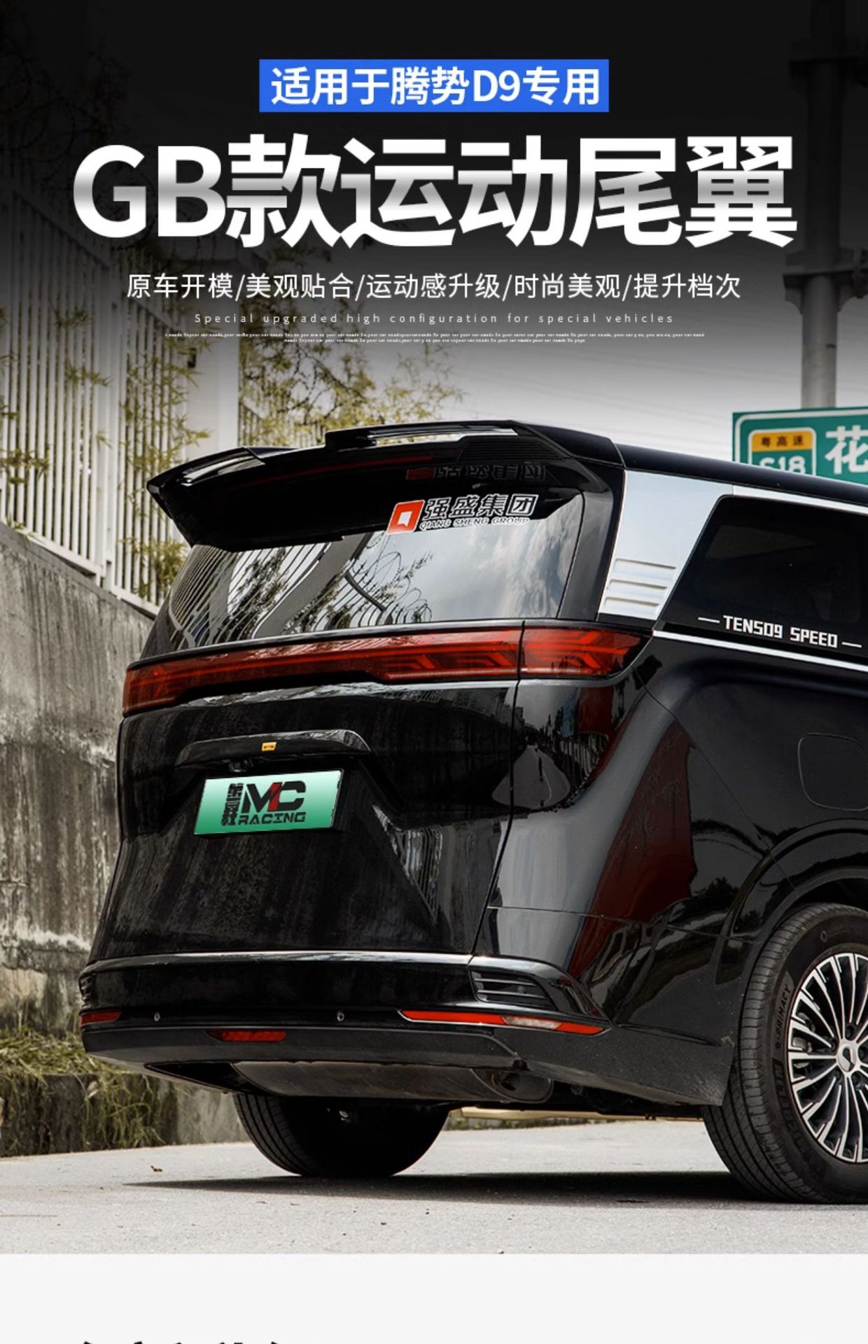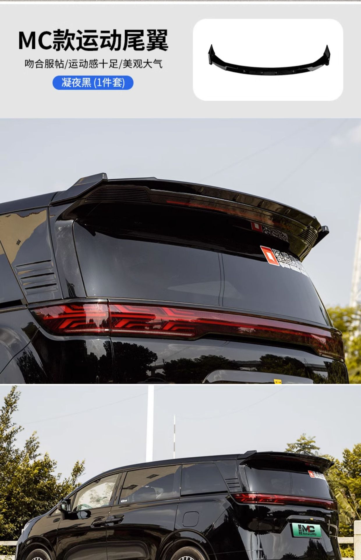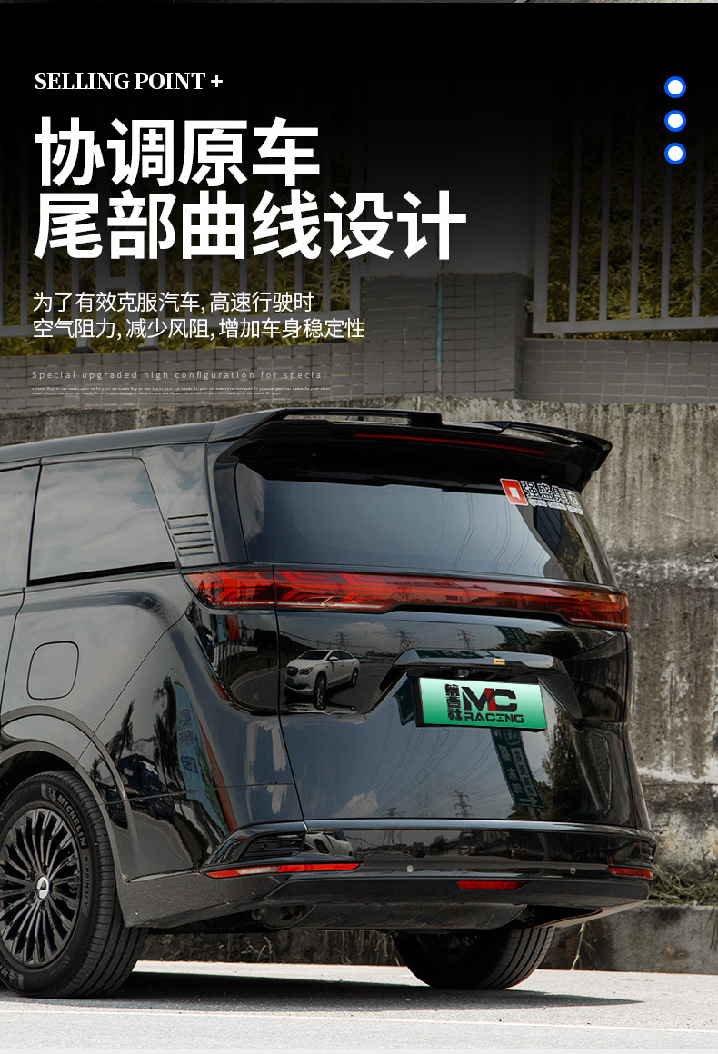 • Aerodynamic Design: MC style rear wing enhances the vehicle silhouette and improves air stability during high-speed driving.