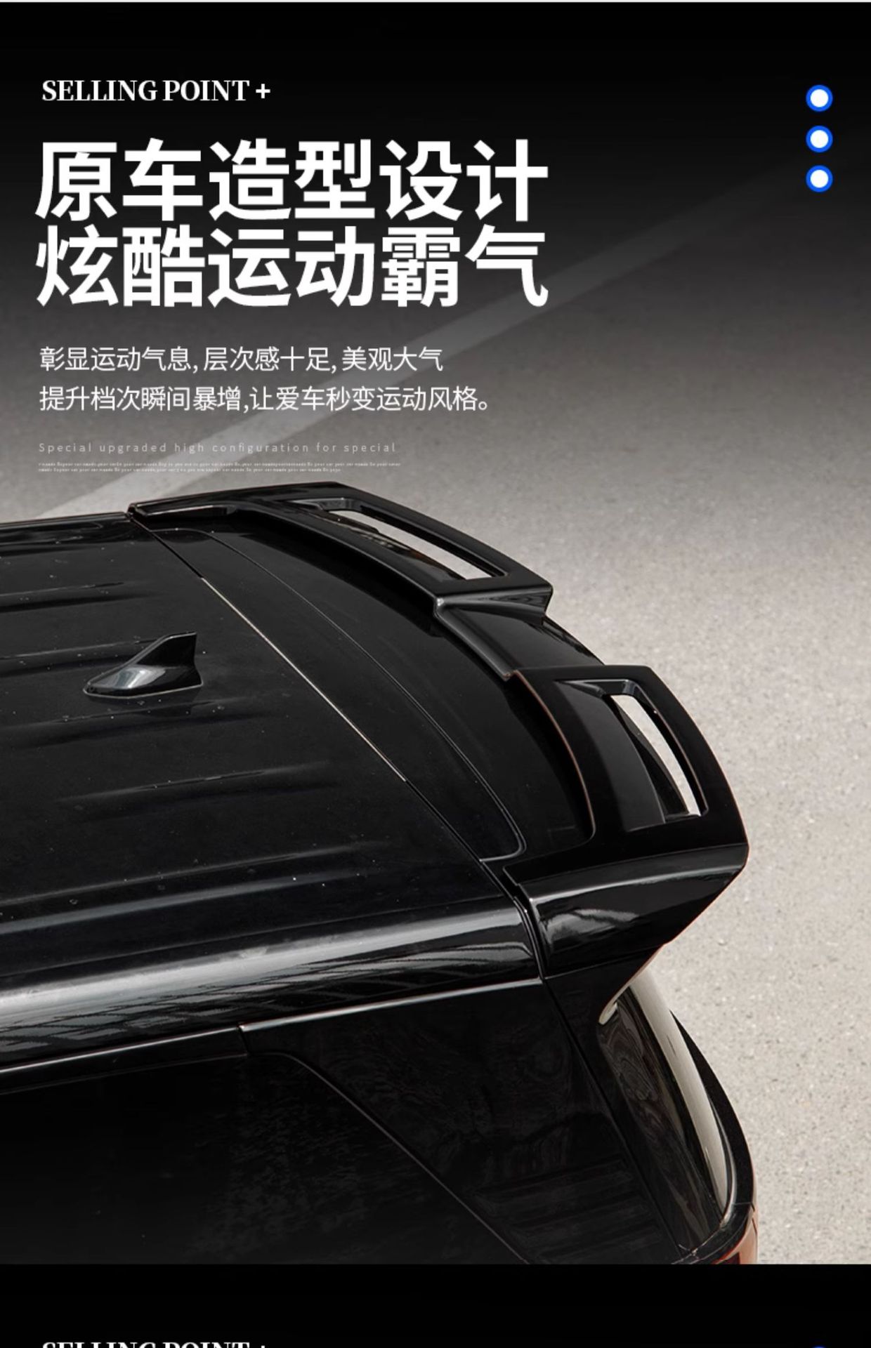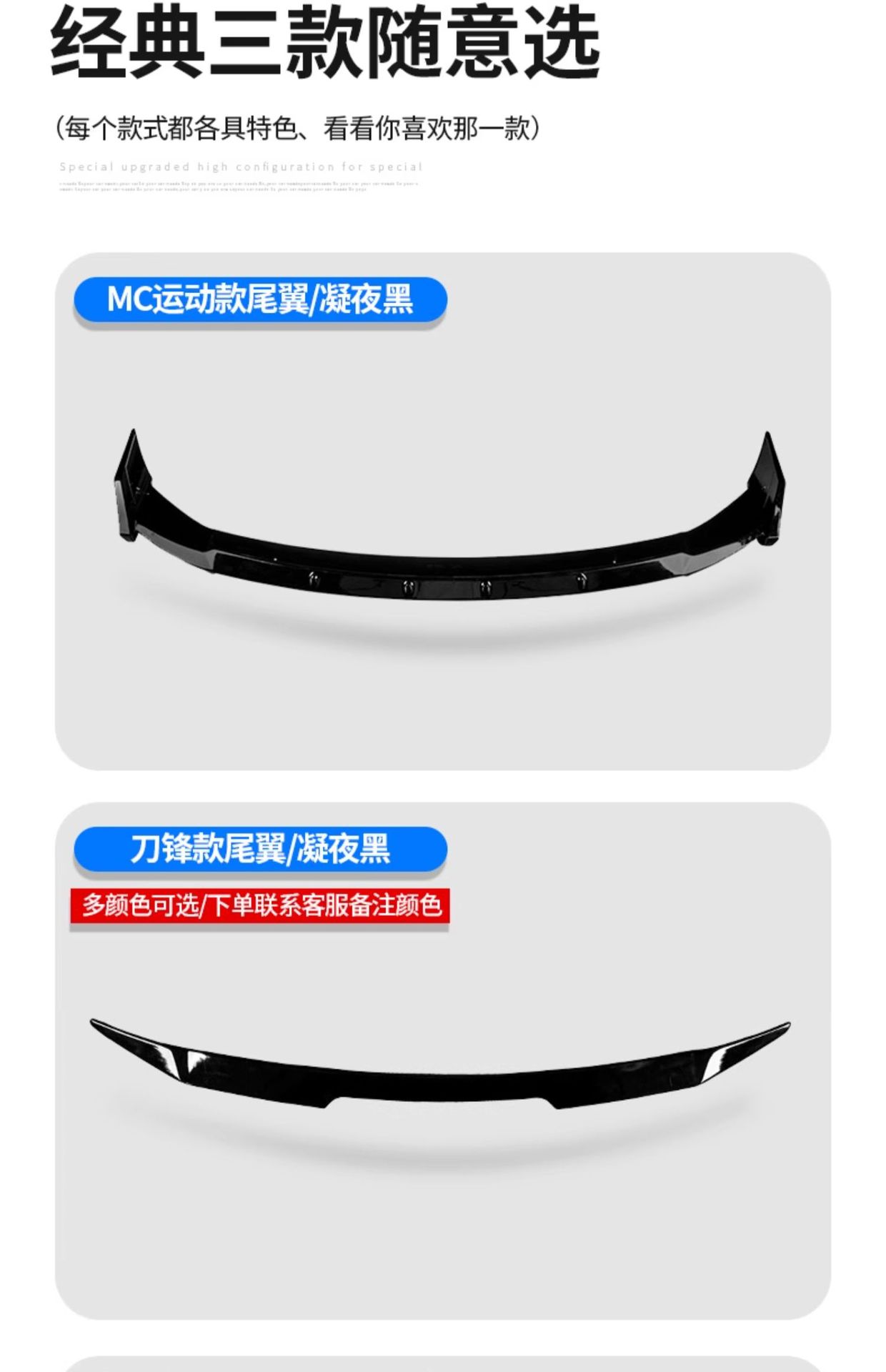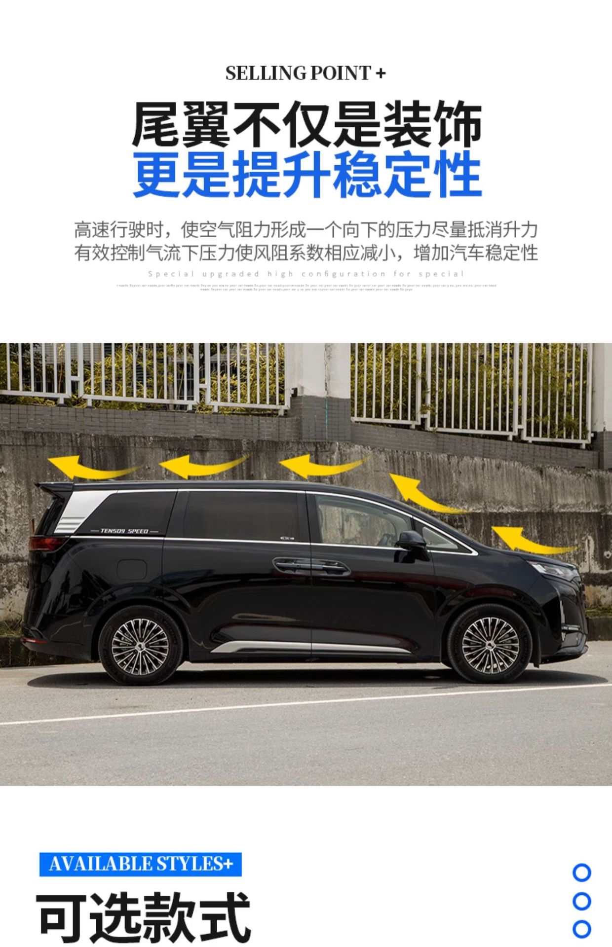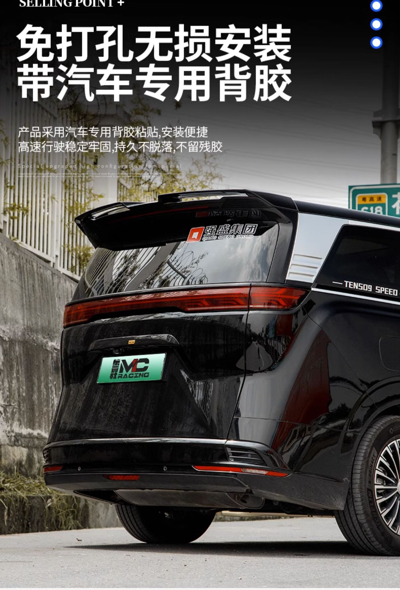 • Aerodynamic Design: MC style rear wing enhances the vehicle silhouette and improves air stability during high-speed driving.