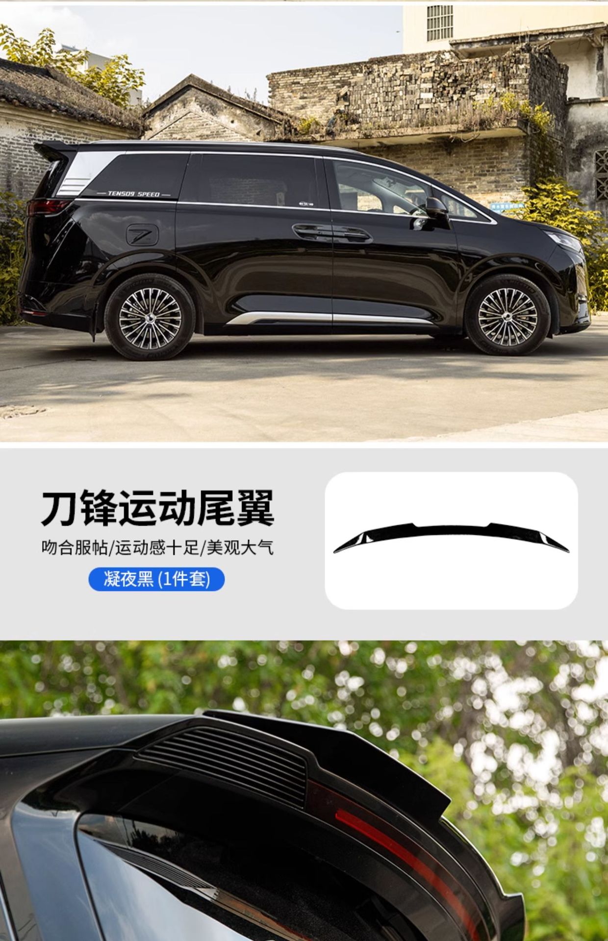 Upgrade your Denza D9 with this MC style rear wing. High-gloss black ABS material, easy drill-free installation, and improved aerodynamics for a sporty look.