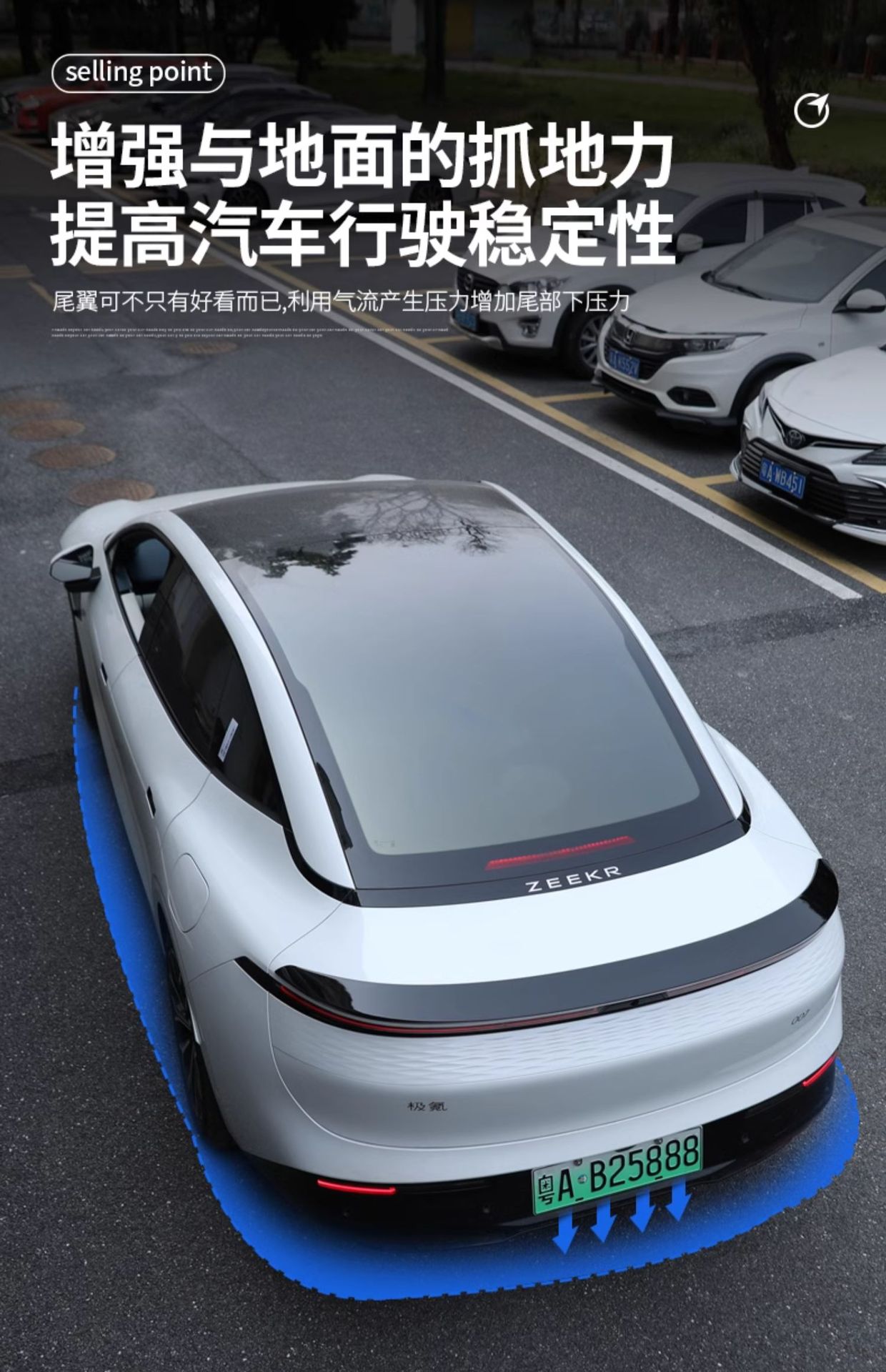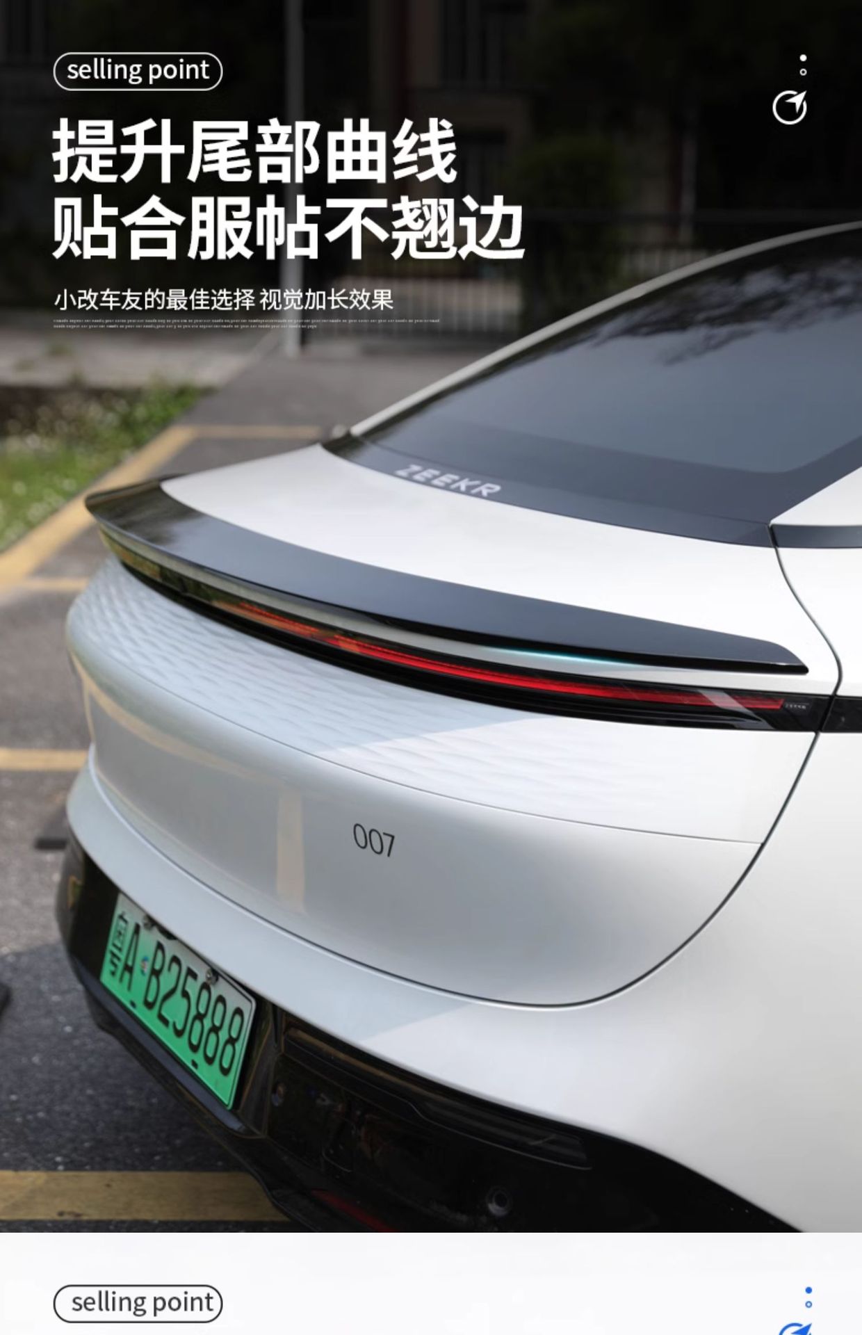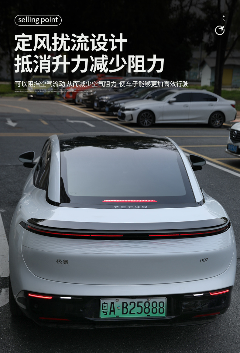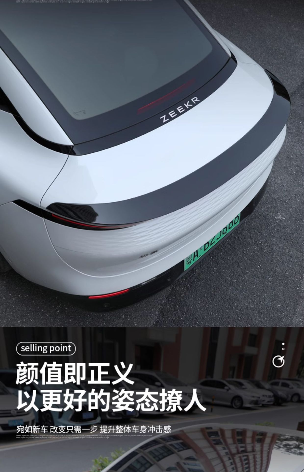 Tags: aerodynamic spoiler, car styling, car tail wing, exterior upgrade, rear wing, trunk spoiler, zeekr 007 accessories