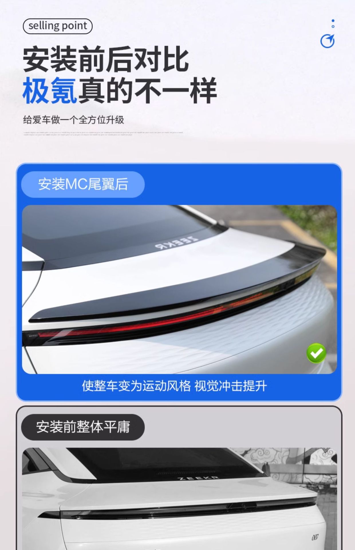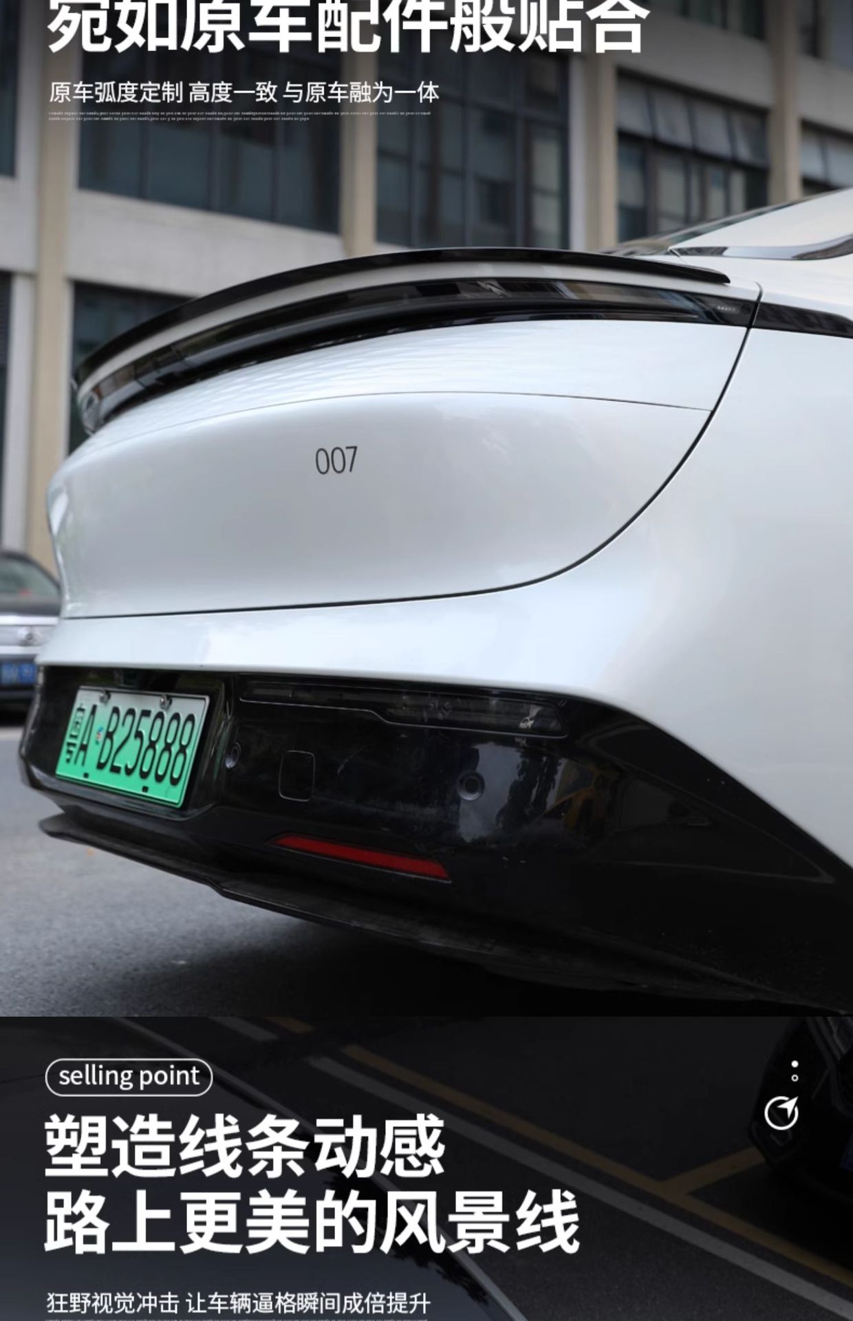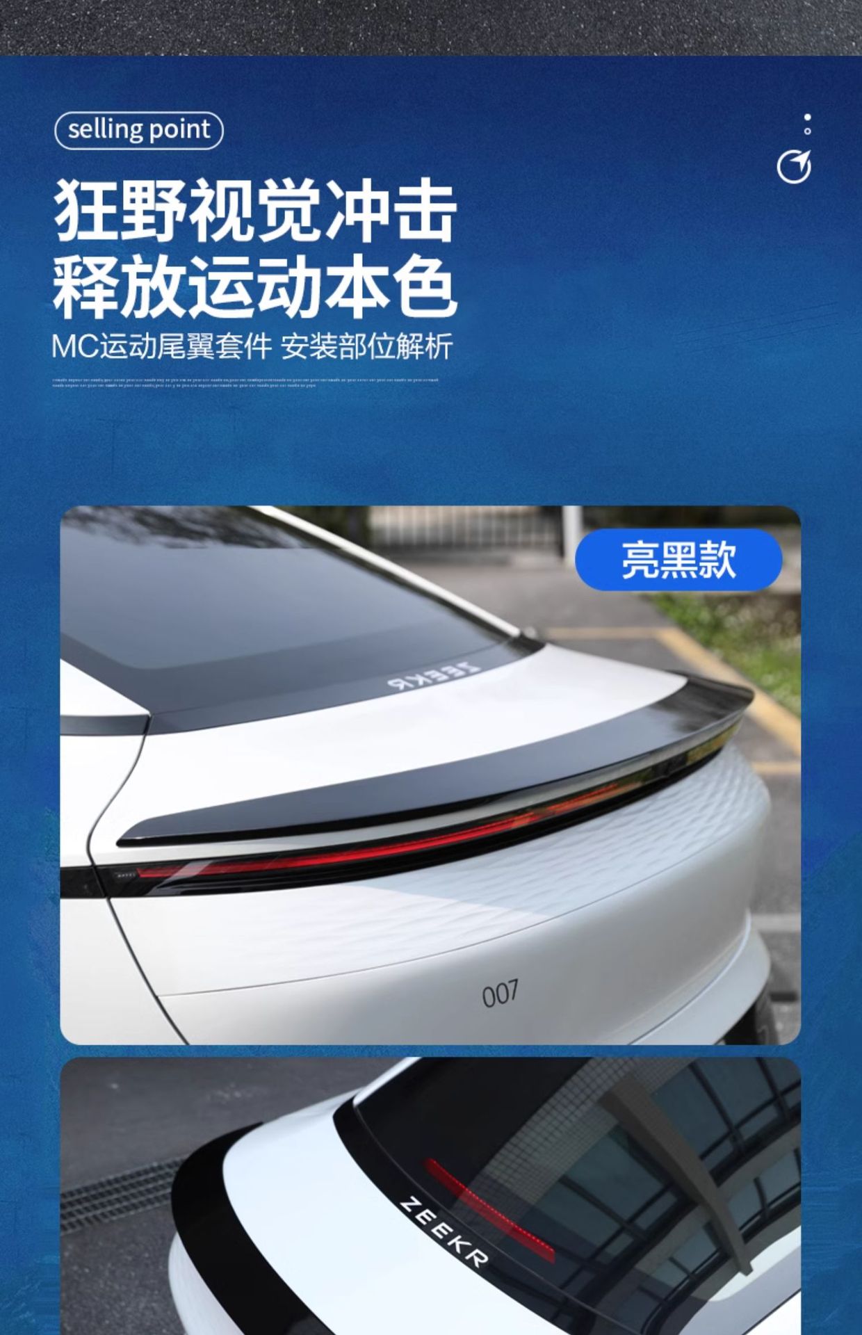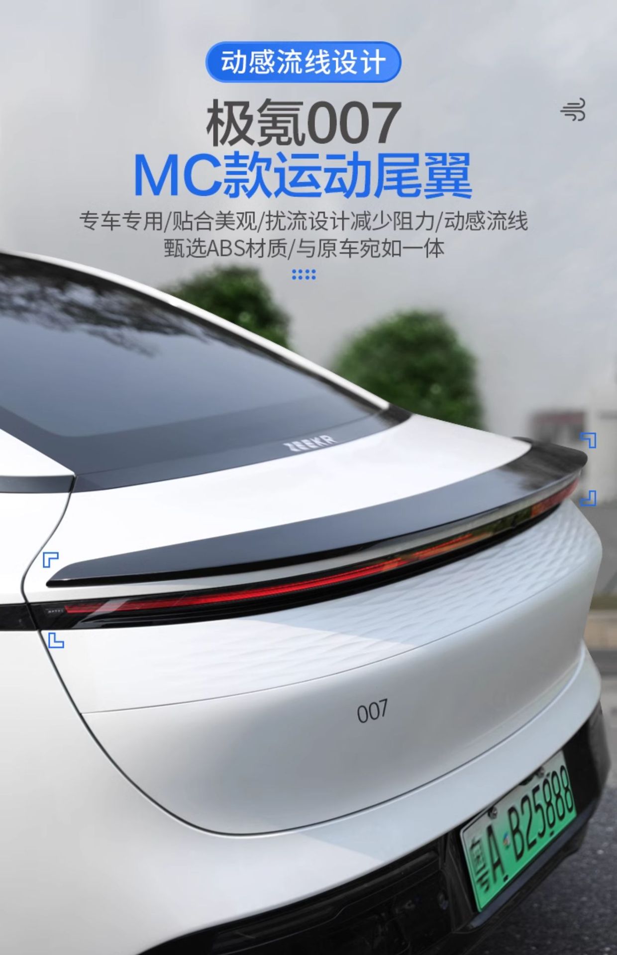 Tags: aerodynamic spoiler, car styling, car tail wing, exterior upgrade, rear wing, trunk spoiler, zeekr 007 accessories