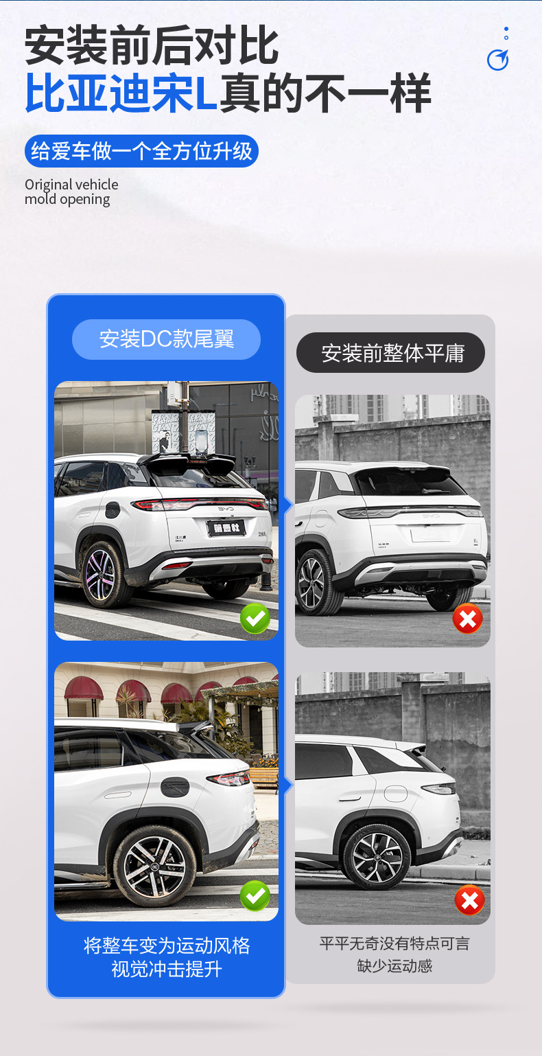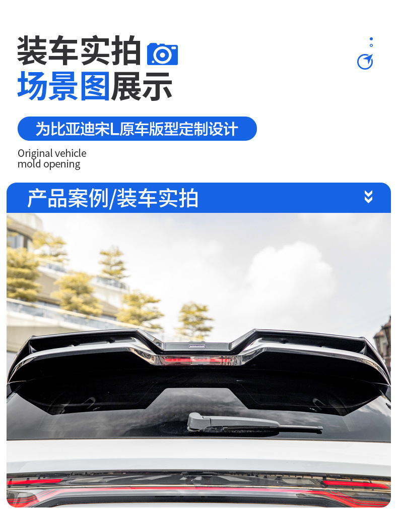 Upgrade your BYD Song L DM-i with this high-quality rear spoiler wing. Enhance aerodynamics and add a sporty, custom look to your vehicle with a durable roof spoiler.