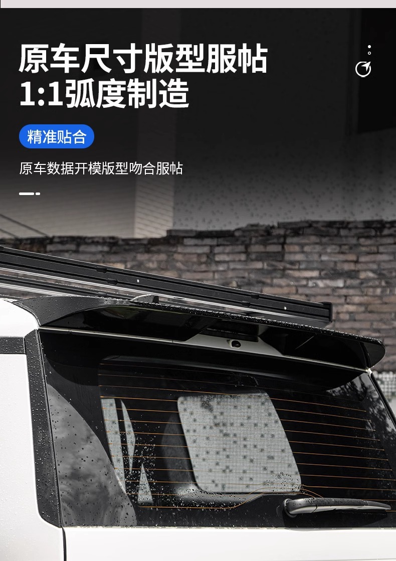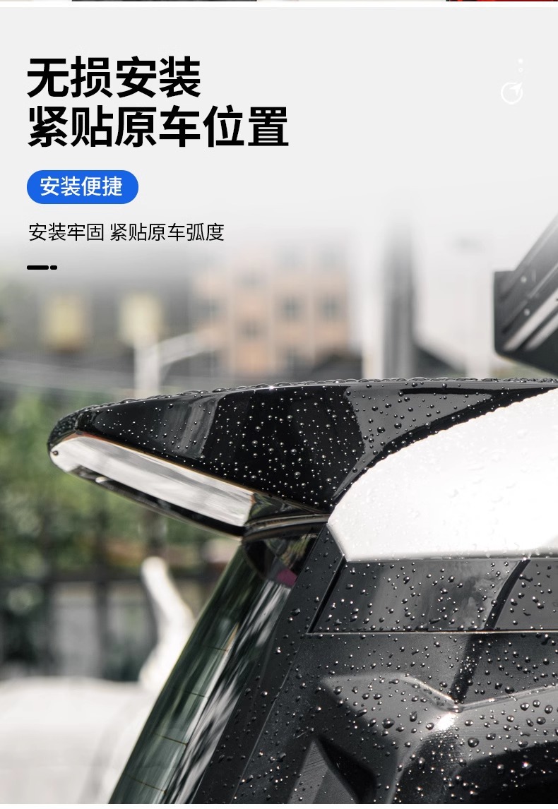 - Aerodynamic curved design improves vehicle stability at high speeds and enhances the exterior profile.