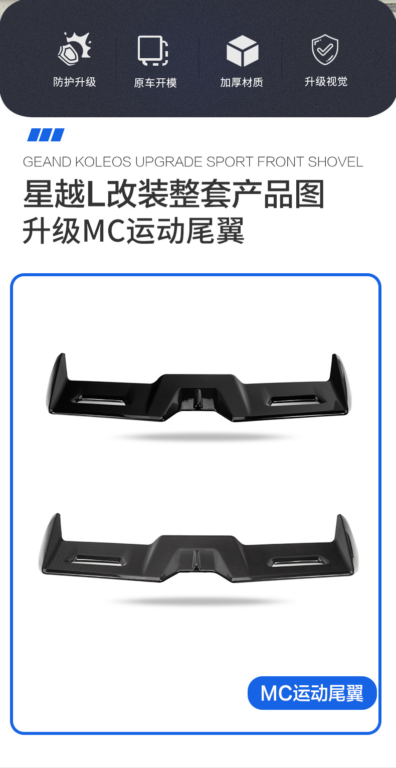 Upgrade your Geely Xingyue L with this sleek matte black rear roof spoiler. Easy no-drill installation enhances aerodynamics and adds a sporty aesthetic look.