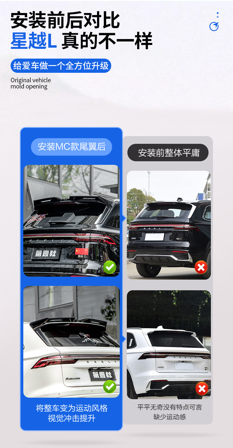 - Tailored Fitment: Specifically engineered to match the rear roof contours of the 2021-2025 Geely Xingyue L model.