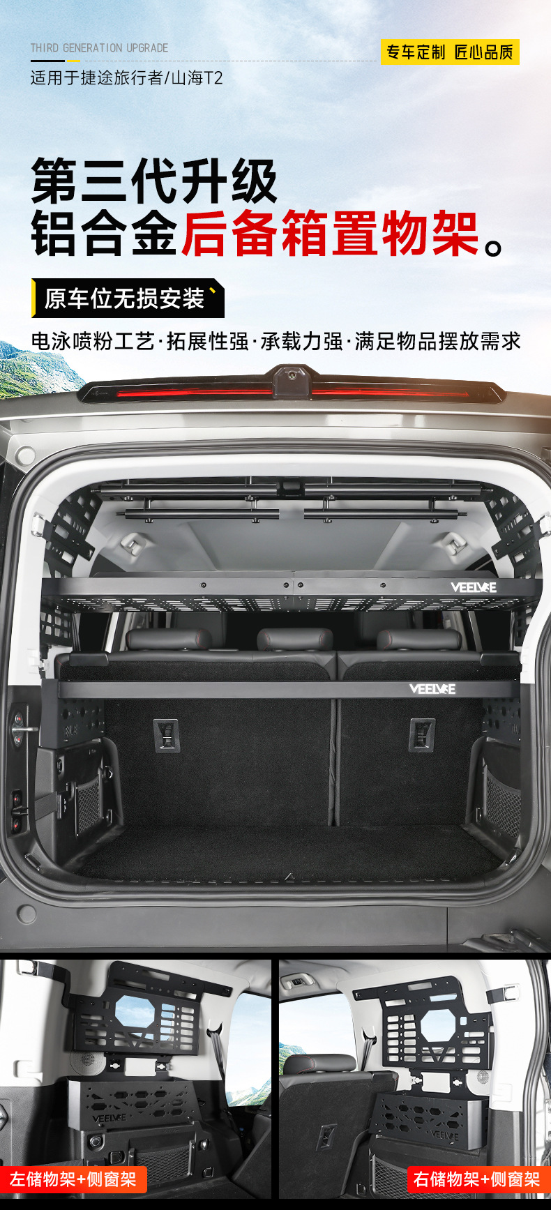 - Specifically engineered for Jetour Traveler Shanhai T2 to ensure accurate mounting on the vehicle’s rear interior walls.