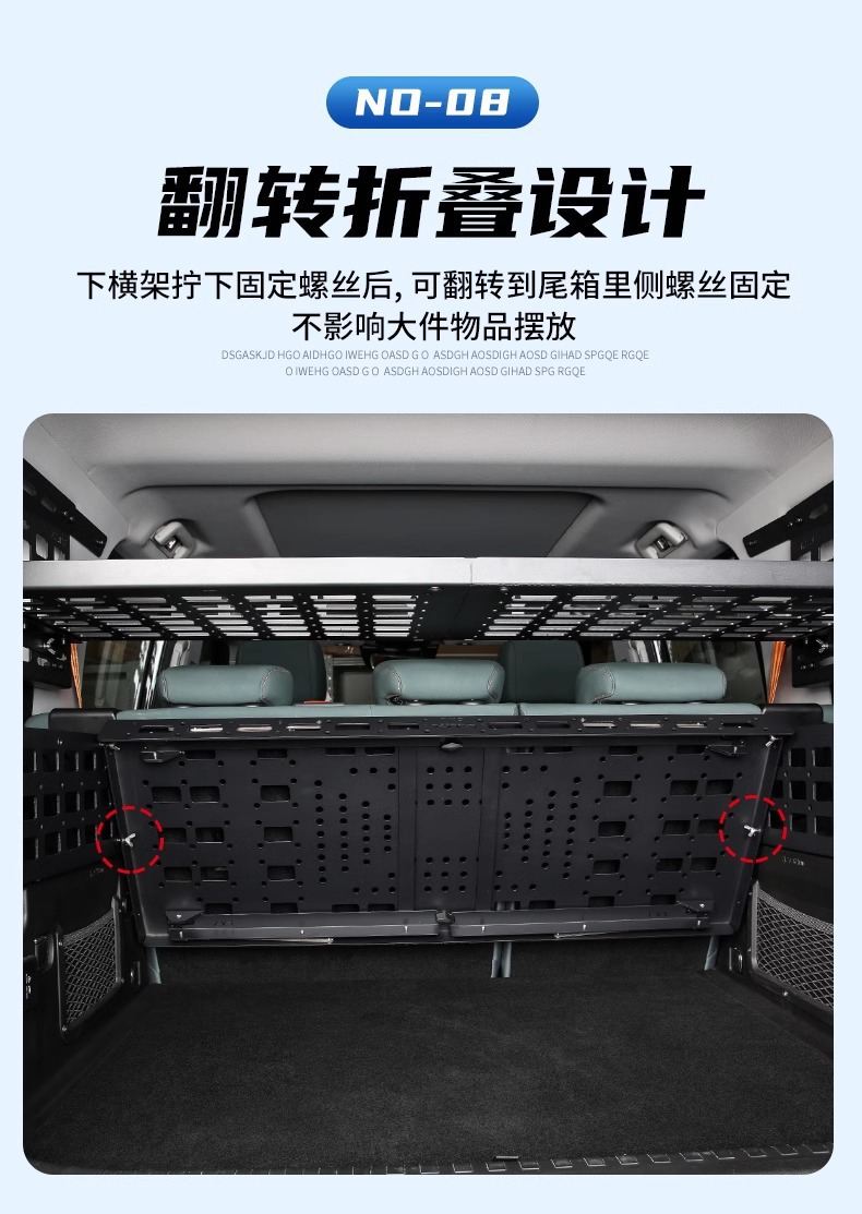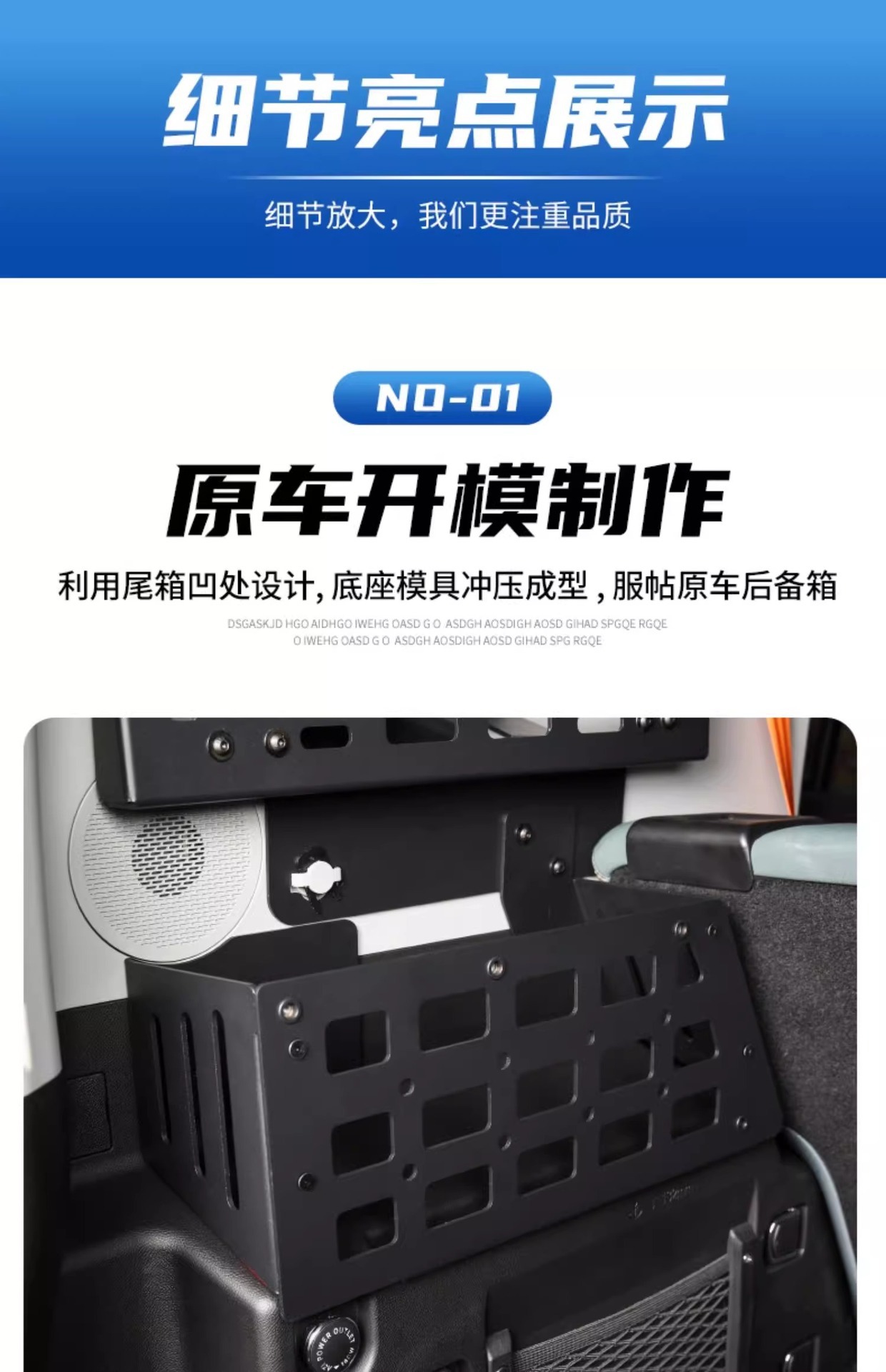 - Specifically designed for the rear trunk of Jetour Traveler and Shanhai T2 providing a precise fit for interior expansion.