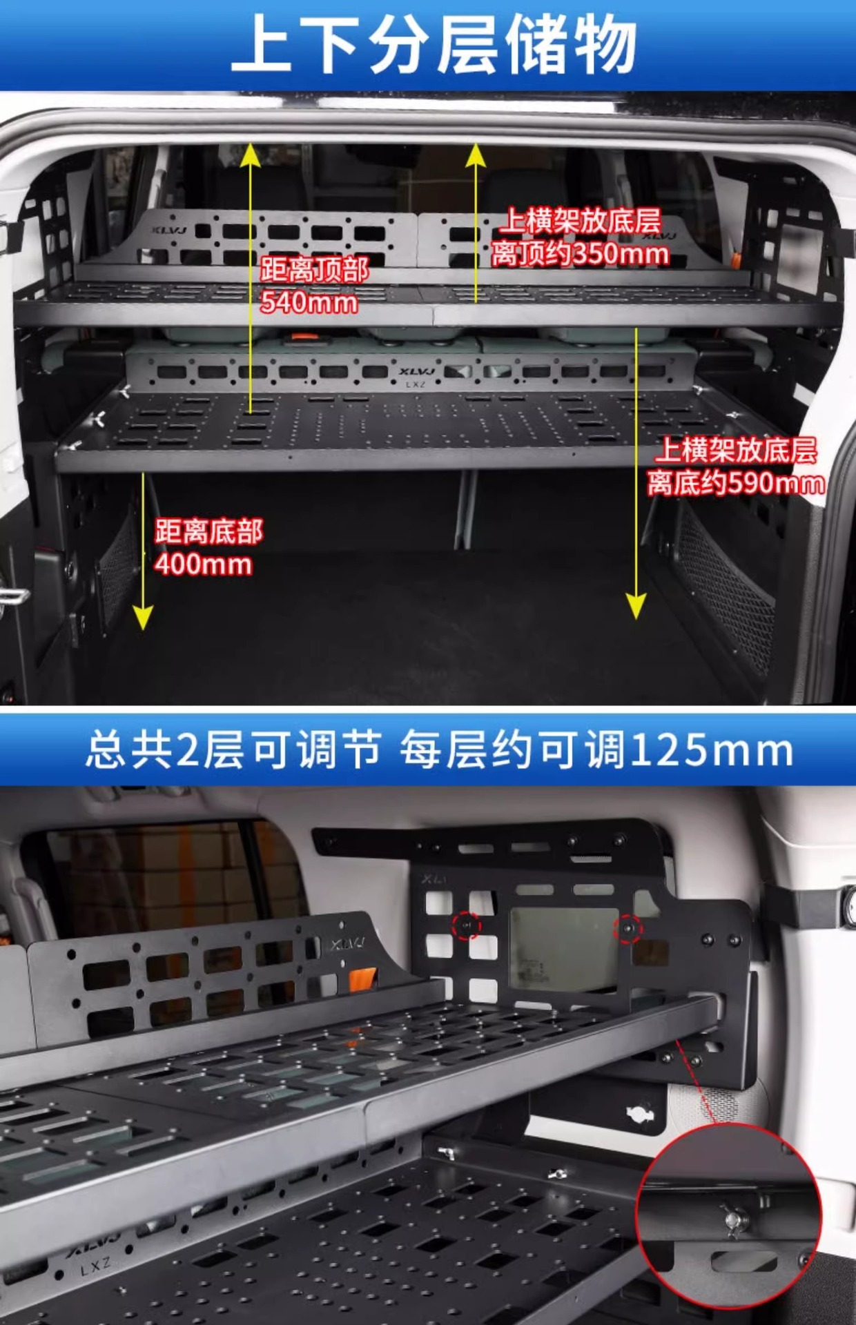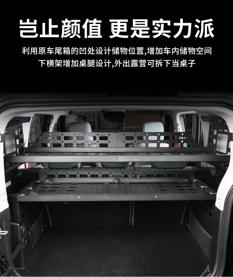 Tags: aluminum luggage frame, cargo organizer, interior expansion shelf, jetour traveler accessories, off-road gear storage, rear trunk shelf, trunk storage rack
