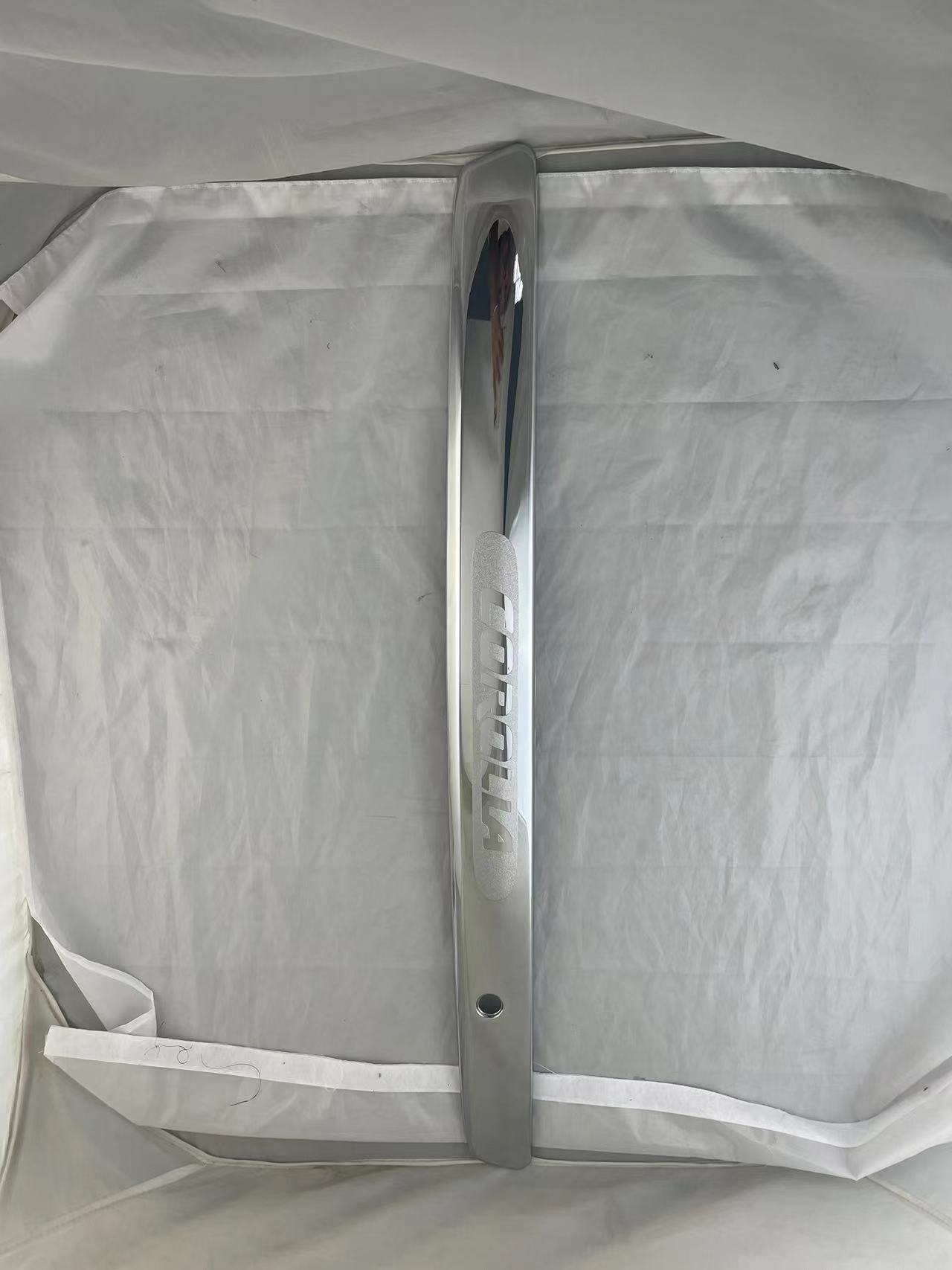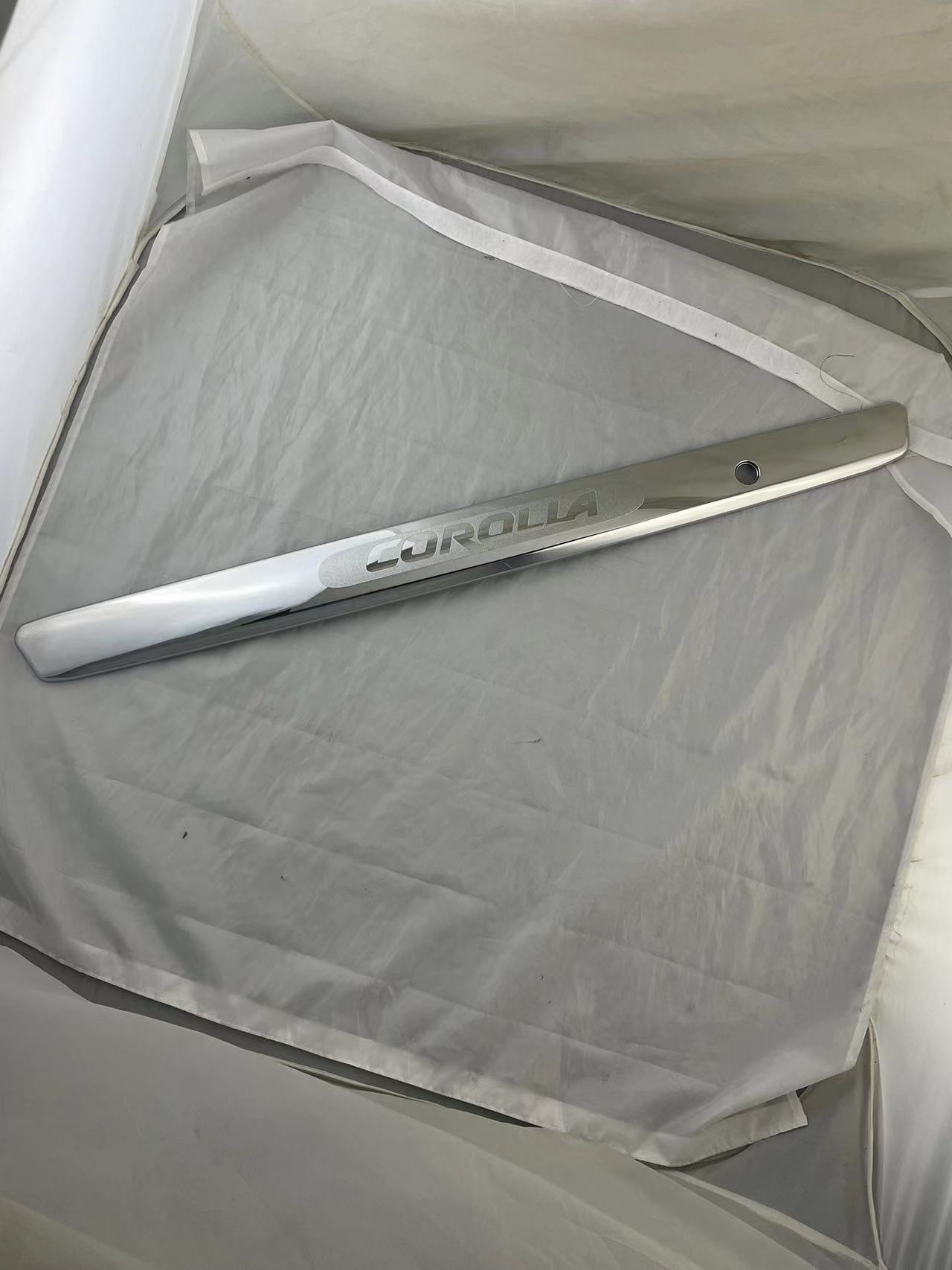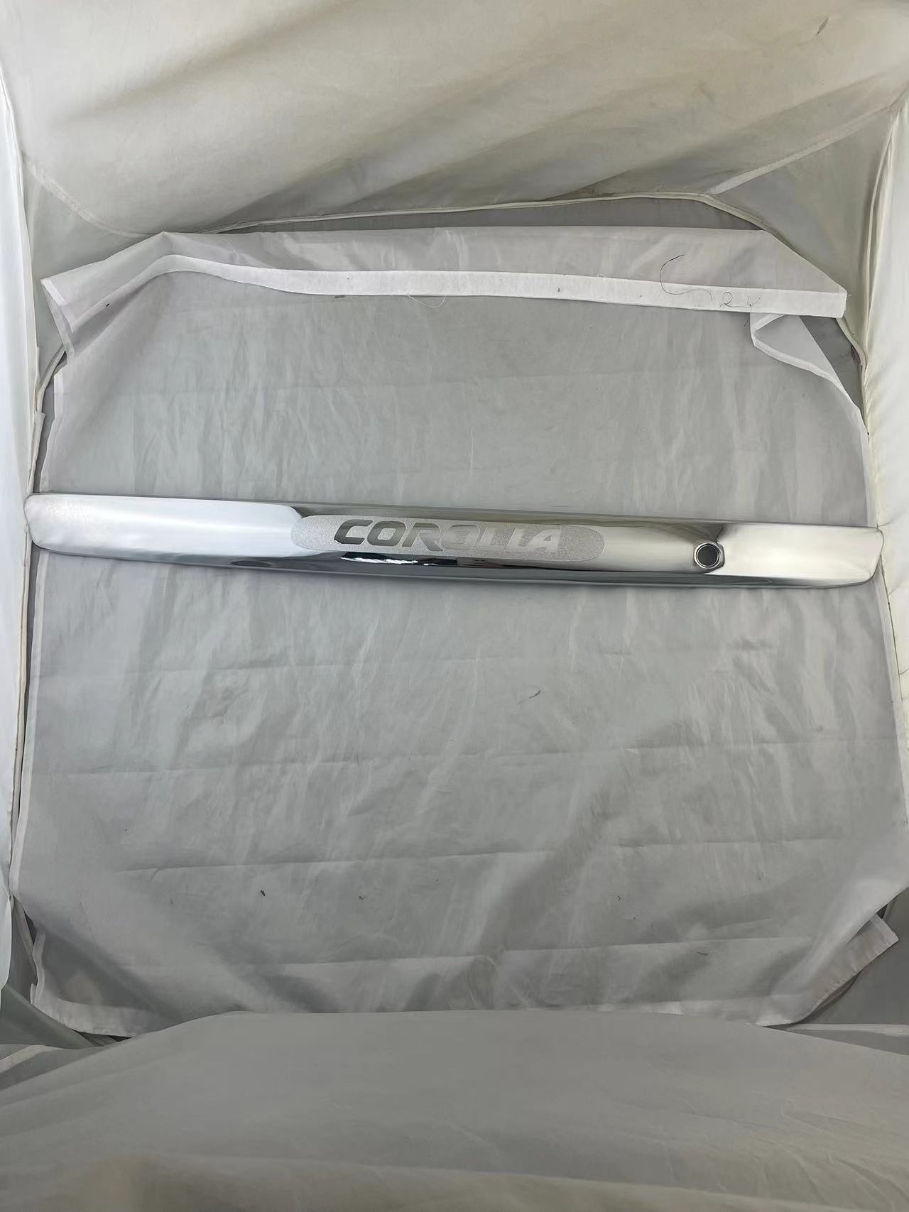 Tags: ABS plastic decoration, automotive exterior accessories, chrome auto body styling, Corolla trunk trim, rear bumper garnish, trunk lid accents