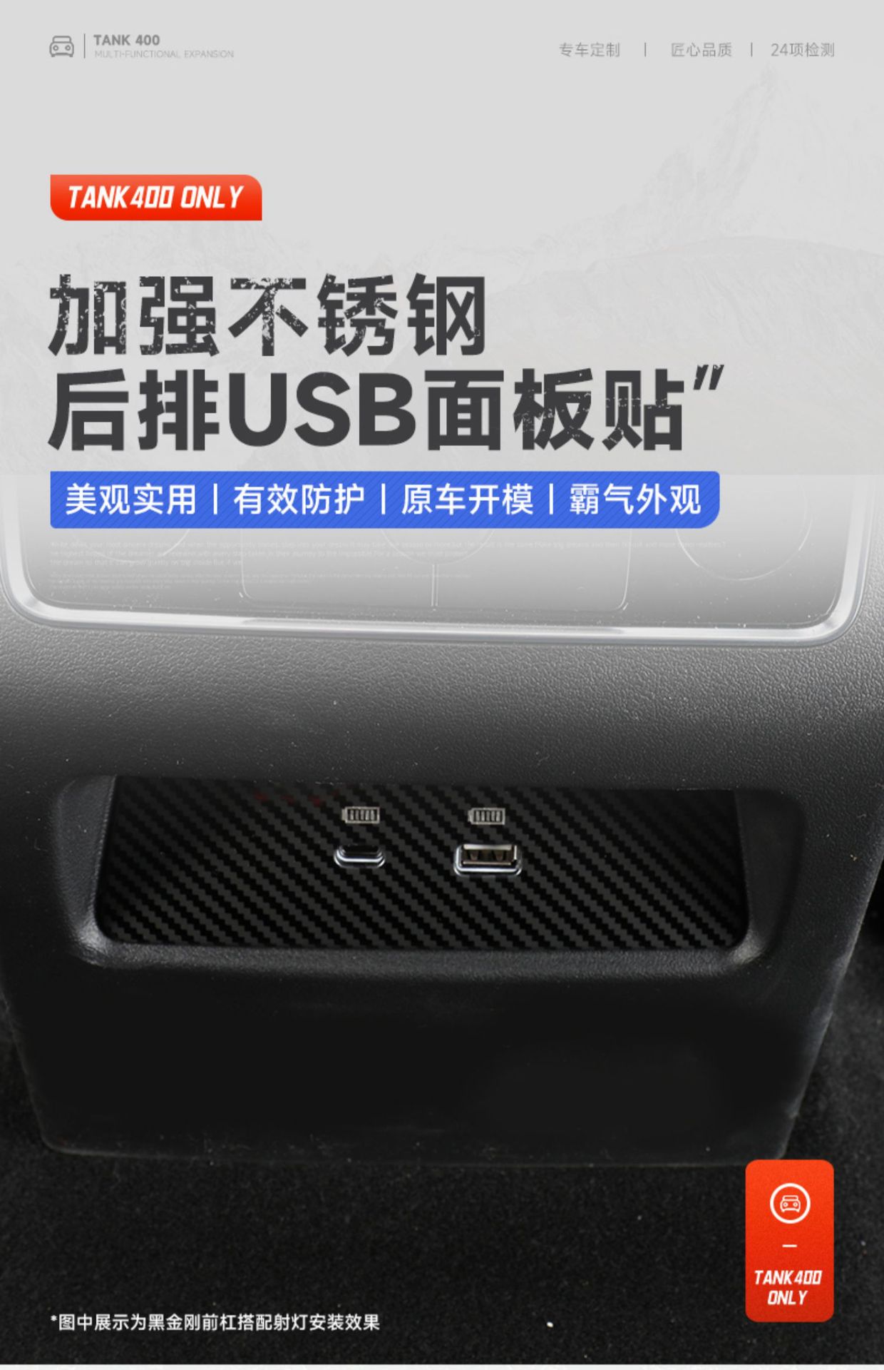 Rear USB Charging Port Protection Cover, 304 Stainless Steel Interior Panel Decor Trim for Tank 400 Hi4-T
