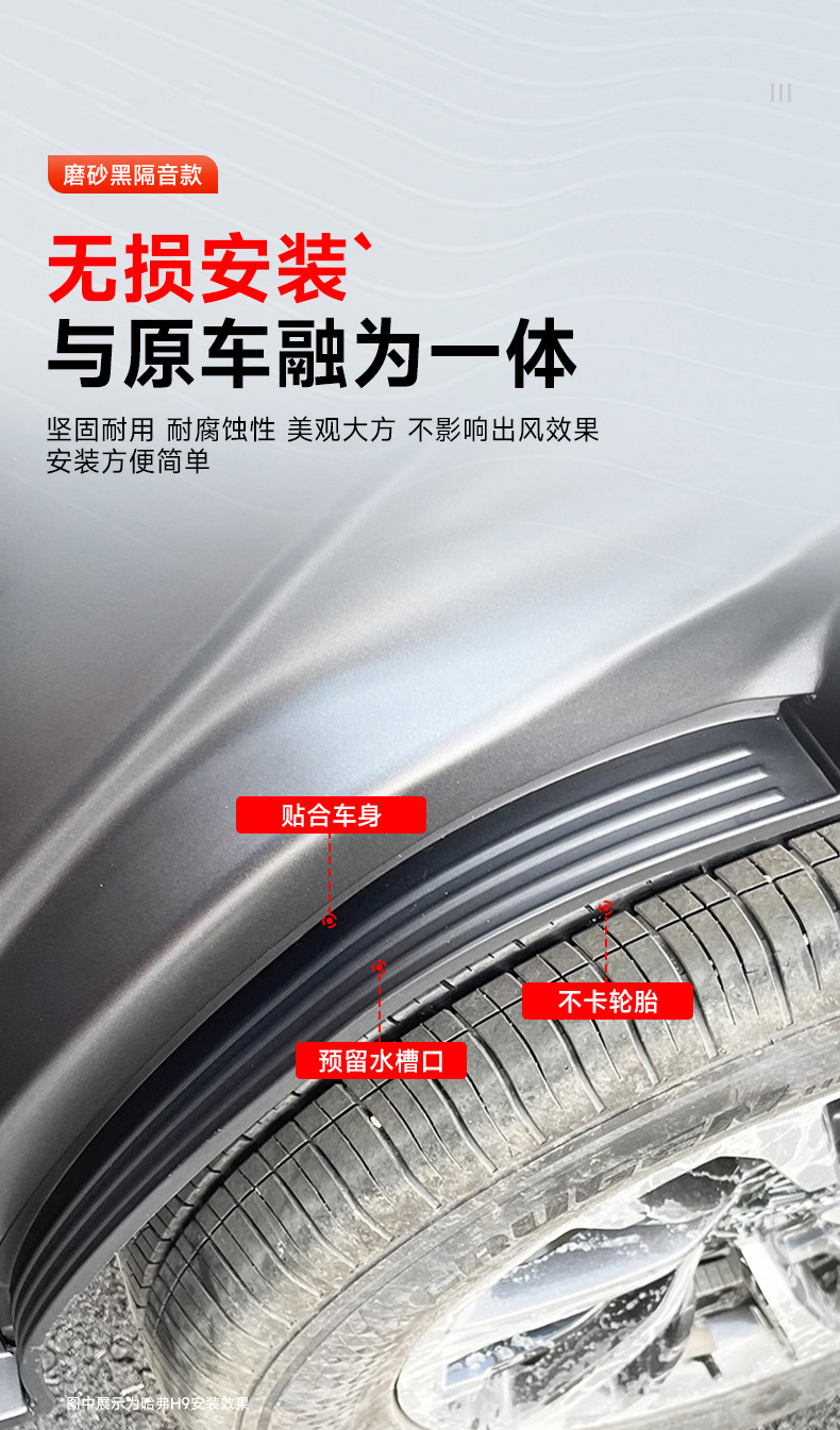 Enhance your Haval H9 with widened rear wheel arch mudguards. Durable inner fender liners provide superior splash protection and debris defense for your vehicle.