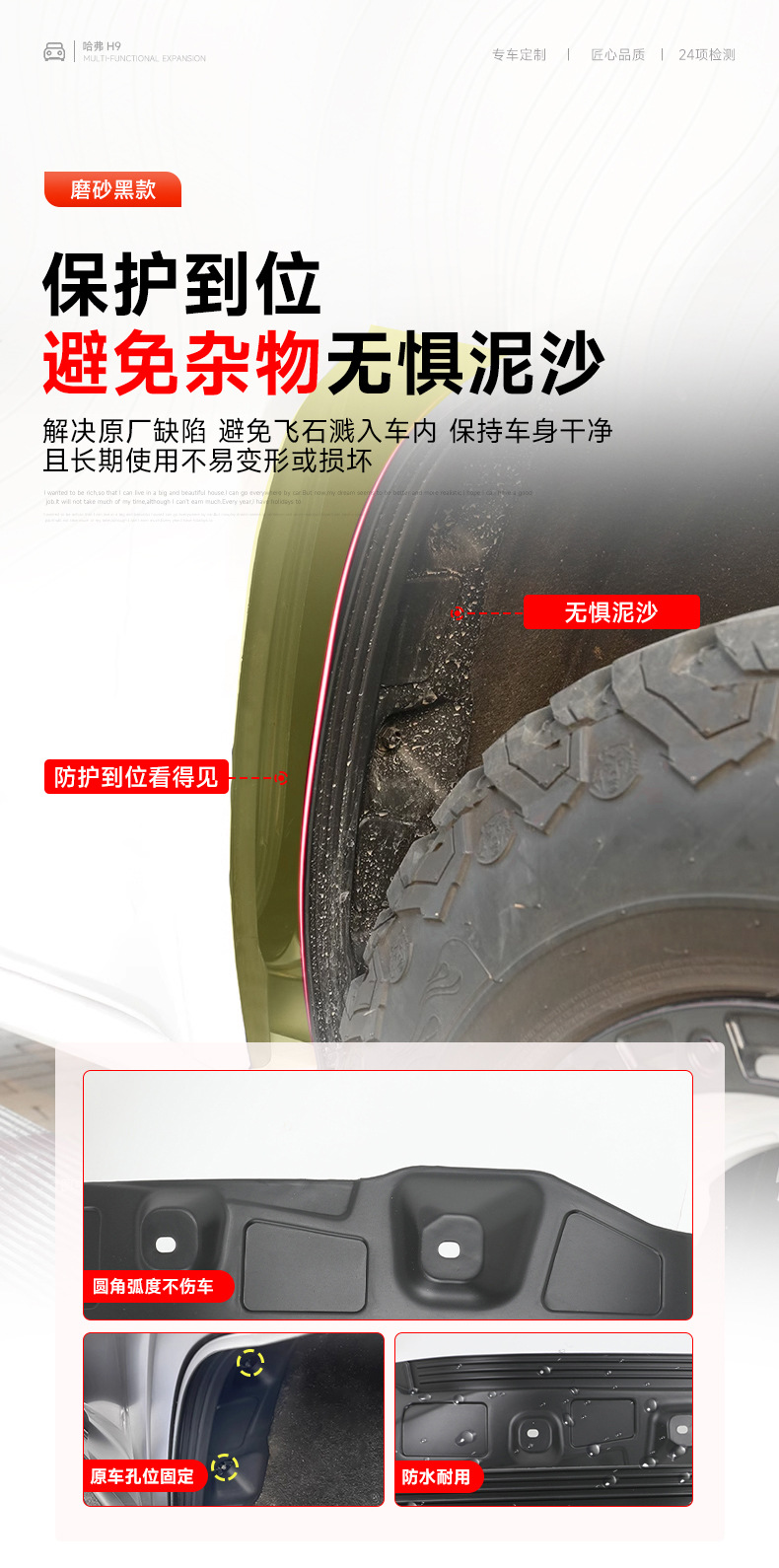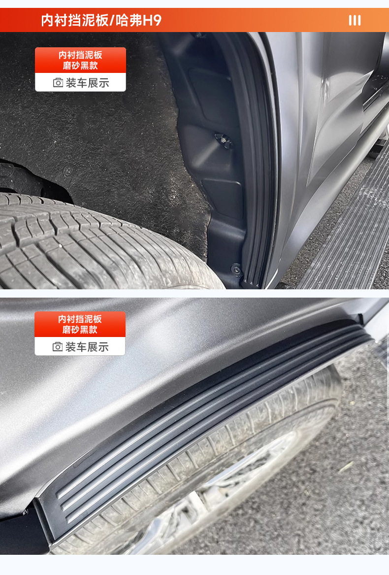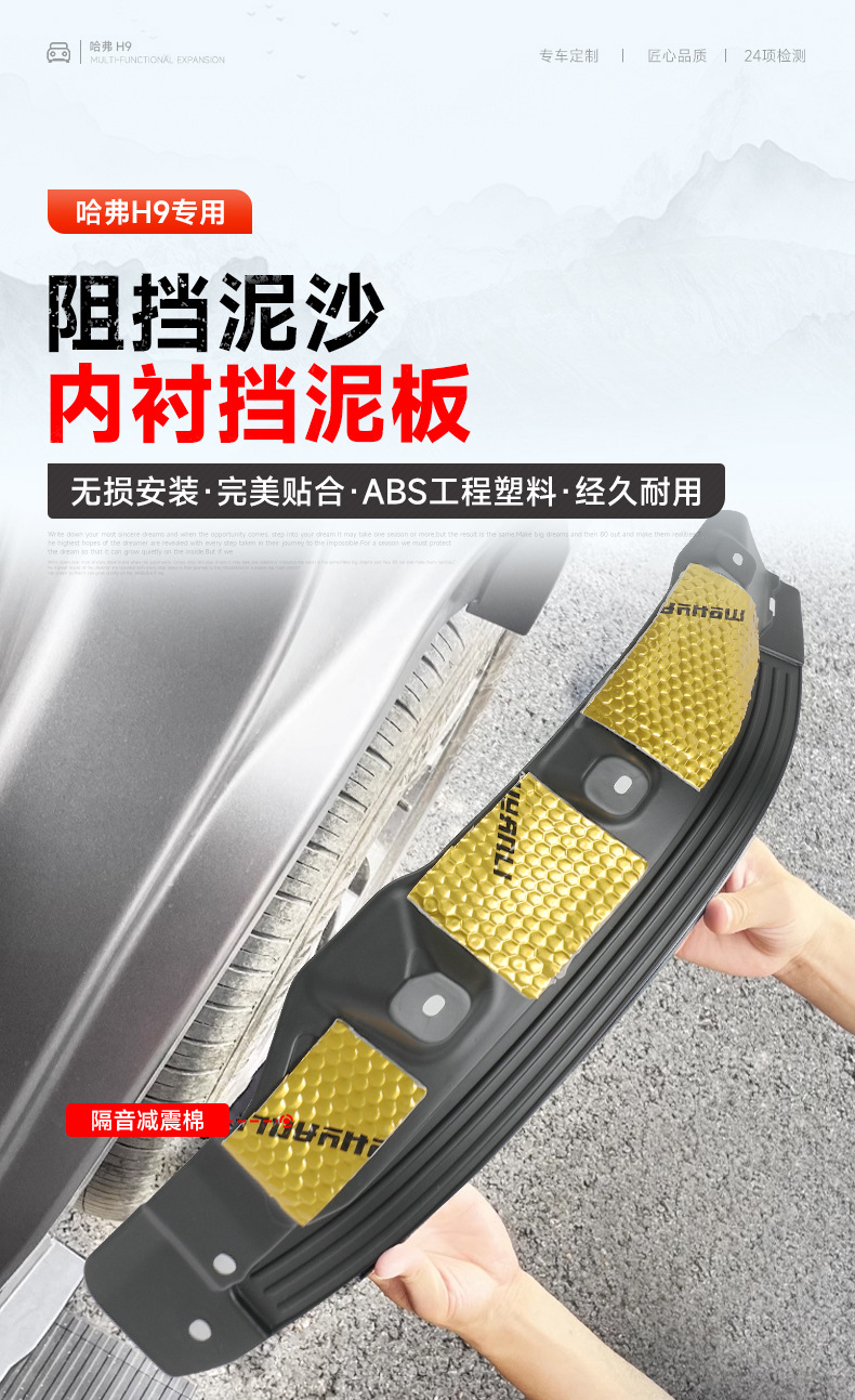 Tags: automotive mudguards, inner fender liner, mud flaps Haval H9, Rear Fender Flares, splash shields, wheel arch guards