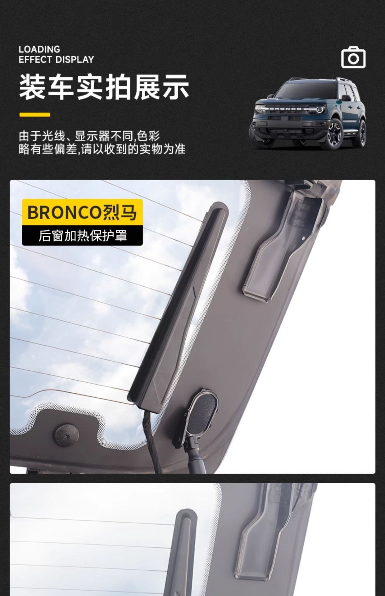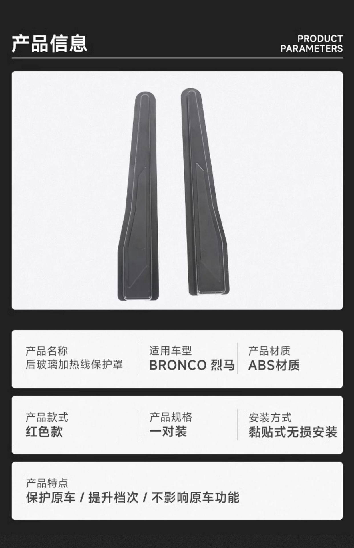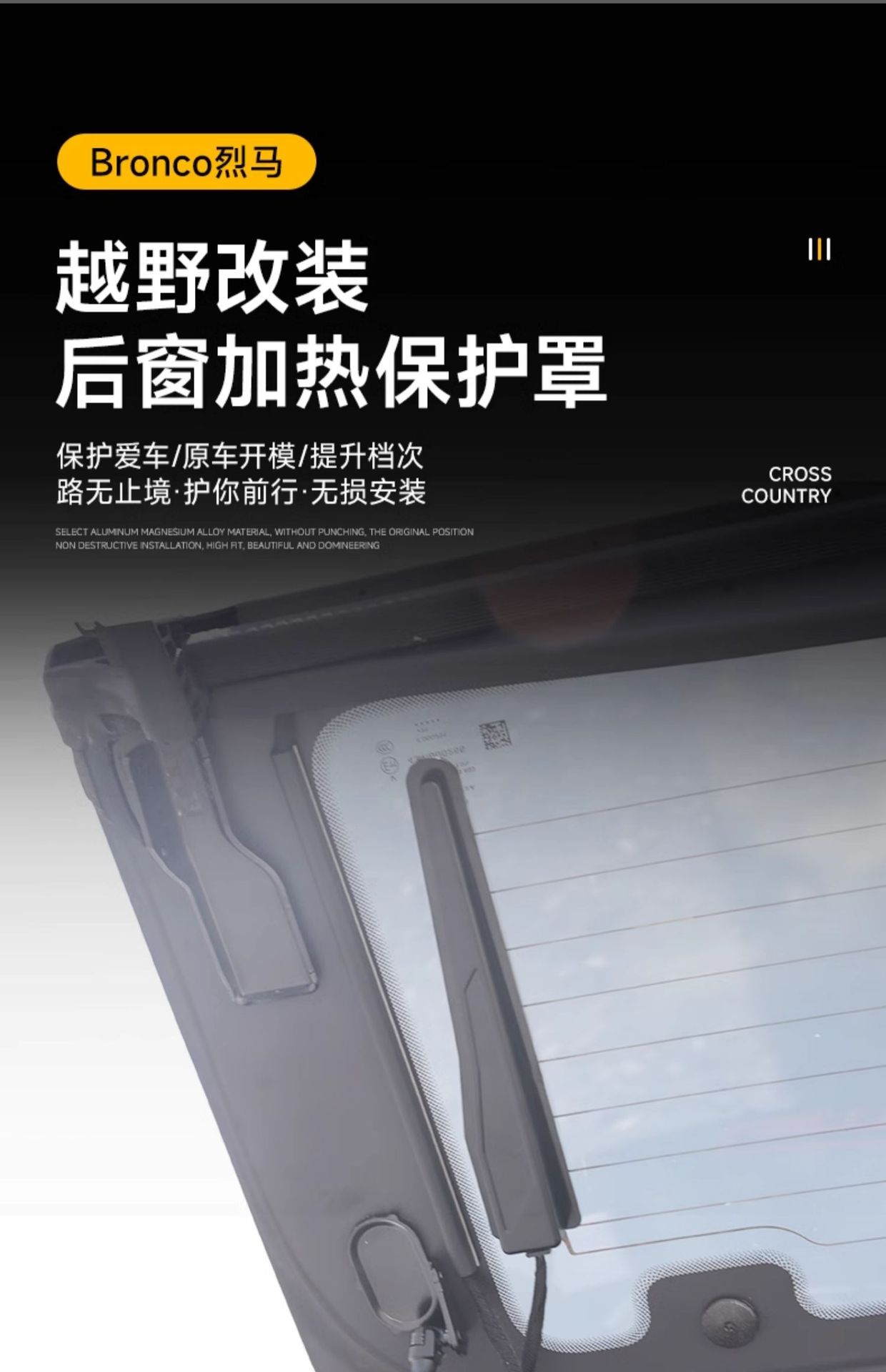 Tags: ford bronco accessories, heating line shield, interior trim protection, rear window defroster cover, sensor protector, tailgate glass trim, wire connector guard