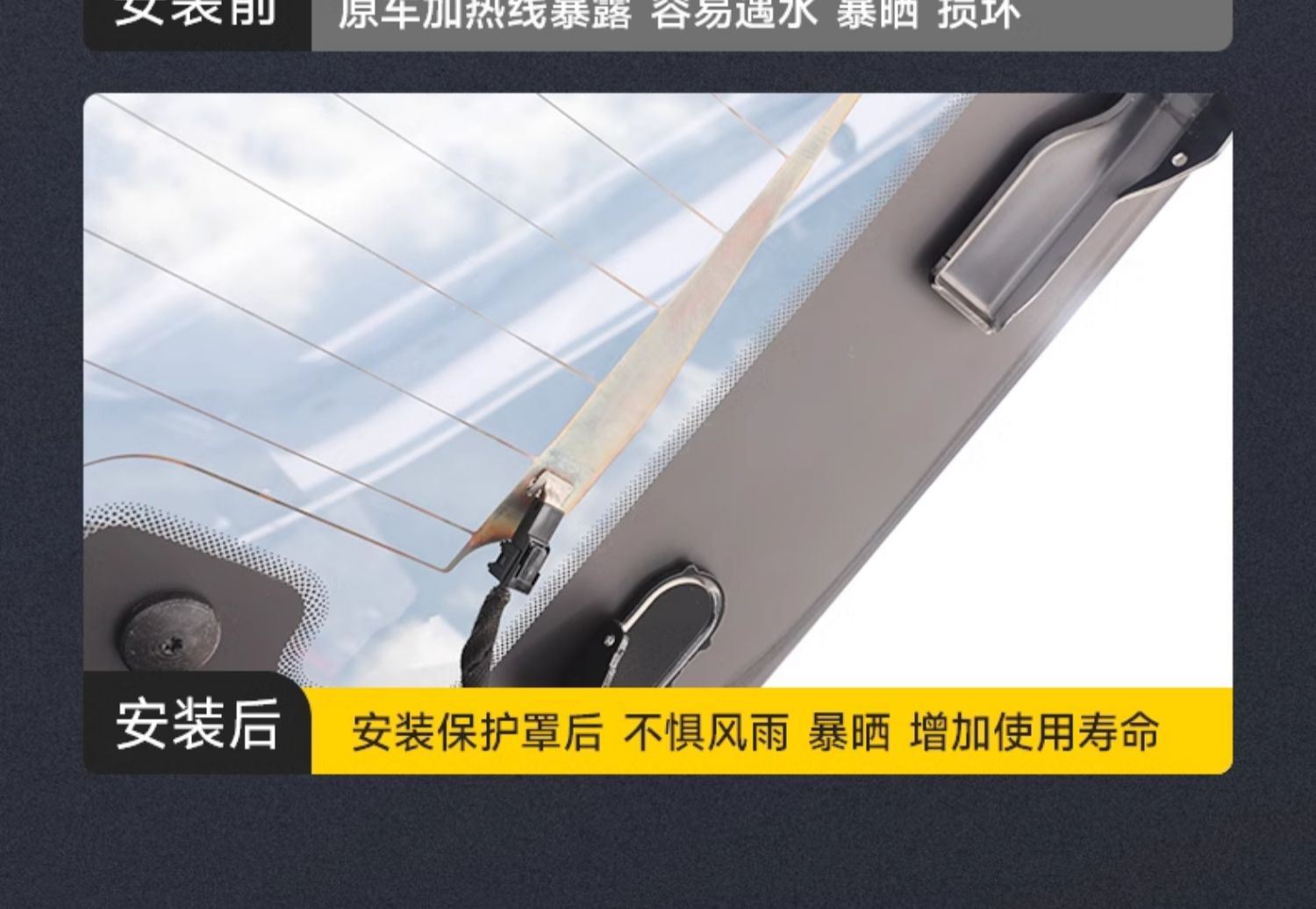 - Specifically designed to protect rear window heating wire connectors from daily wear and tear.