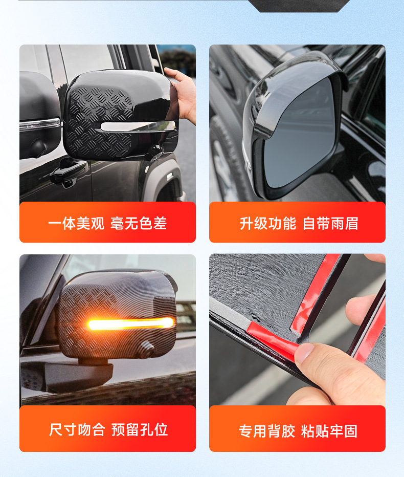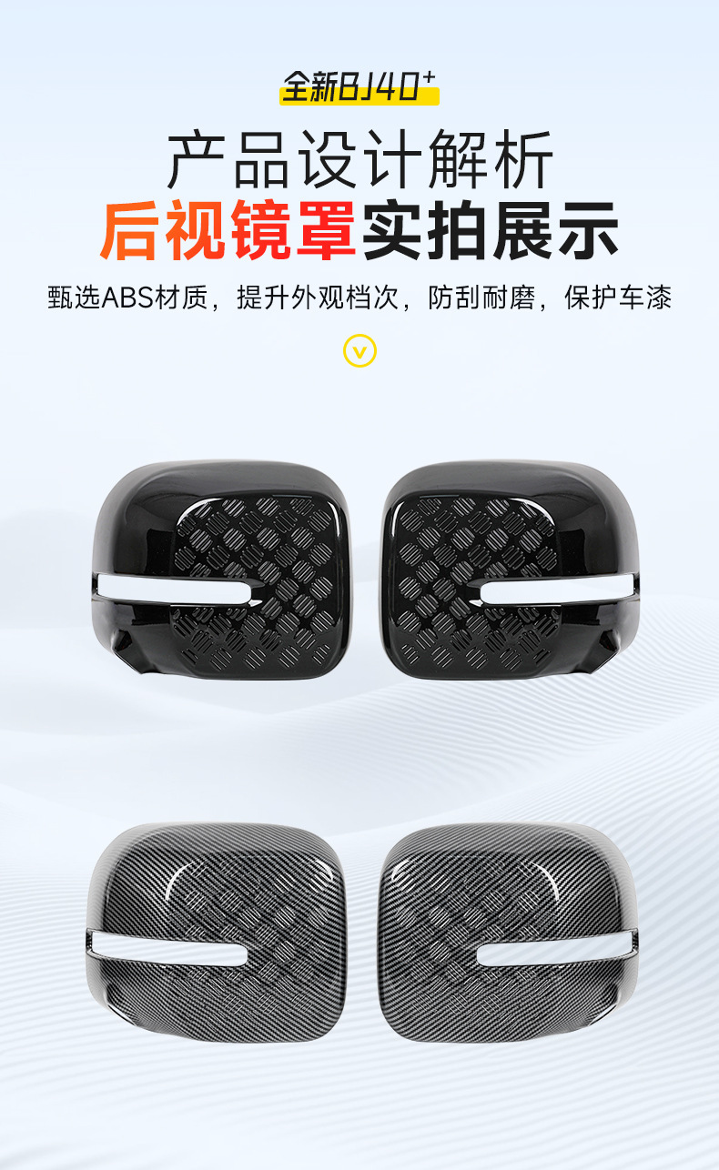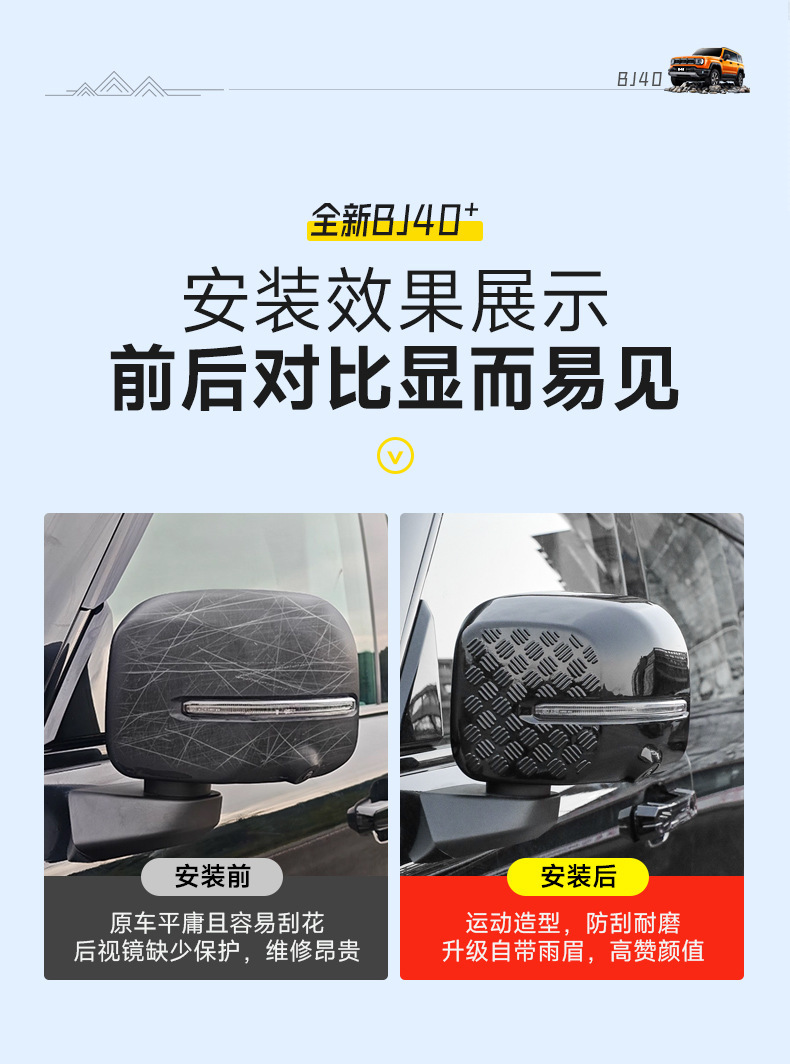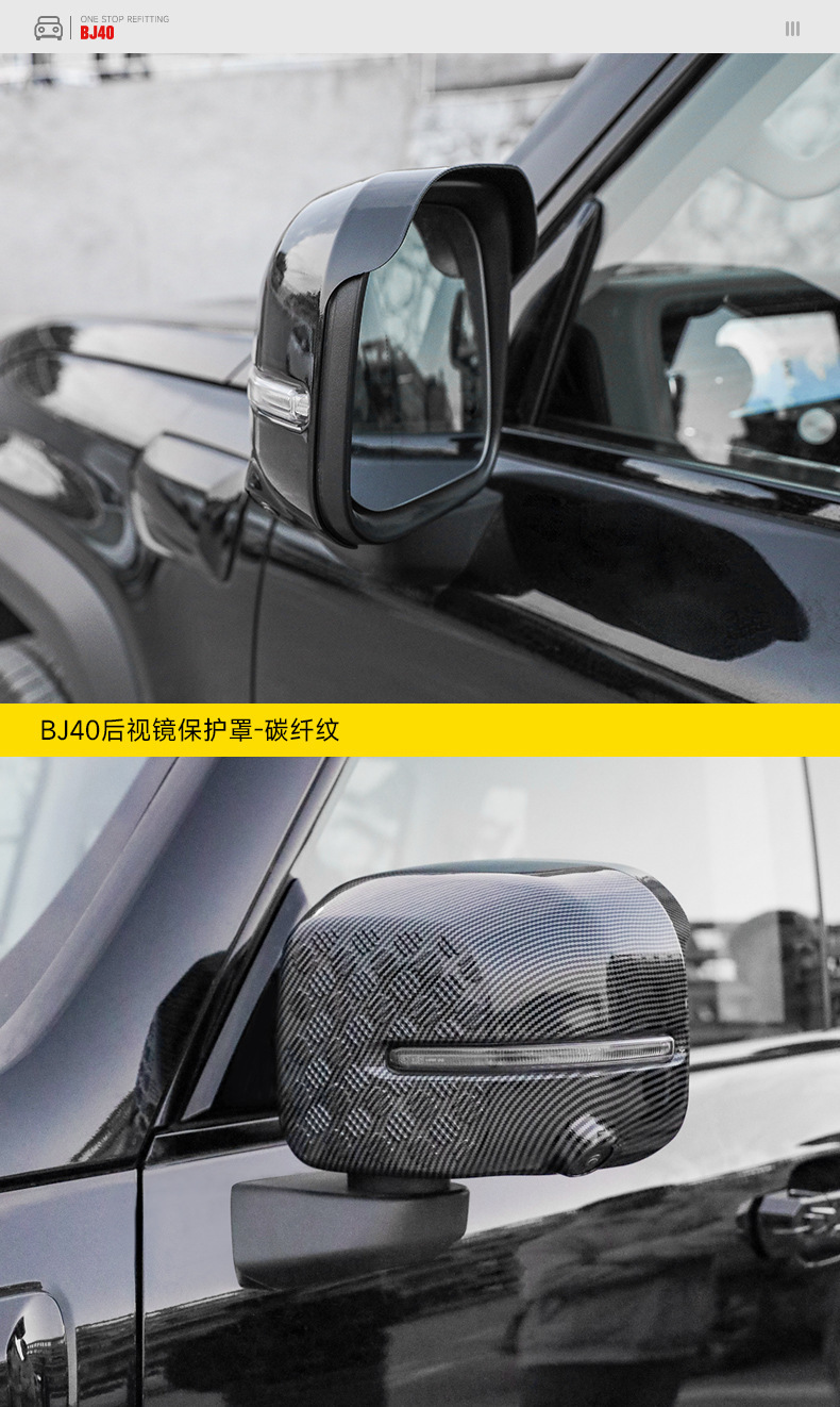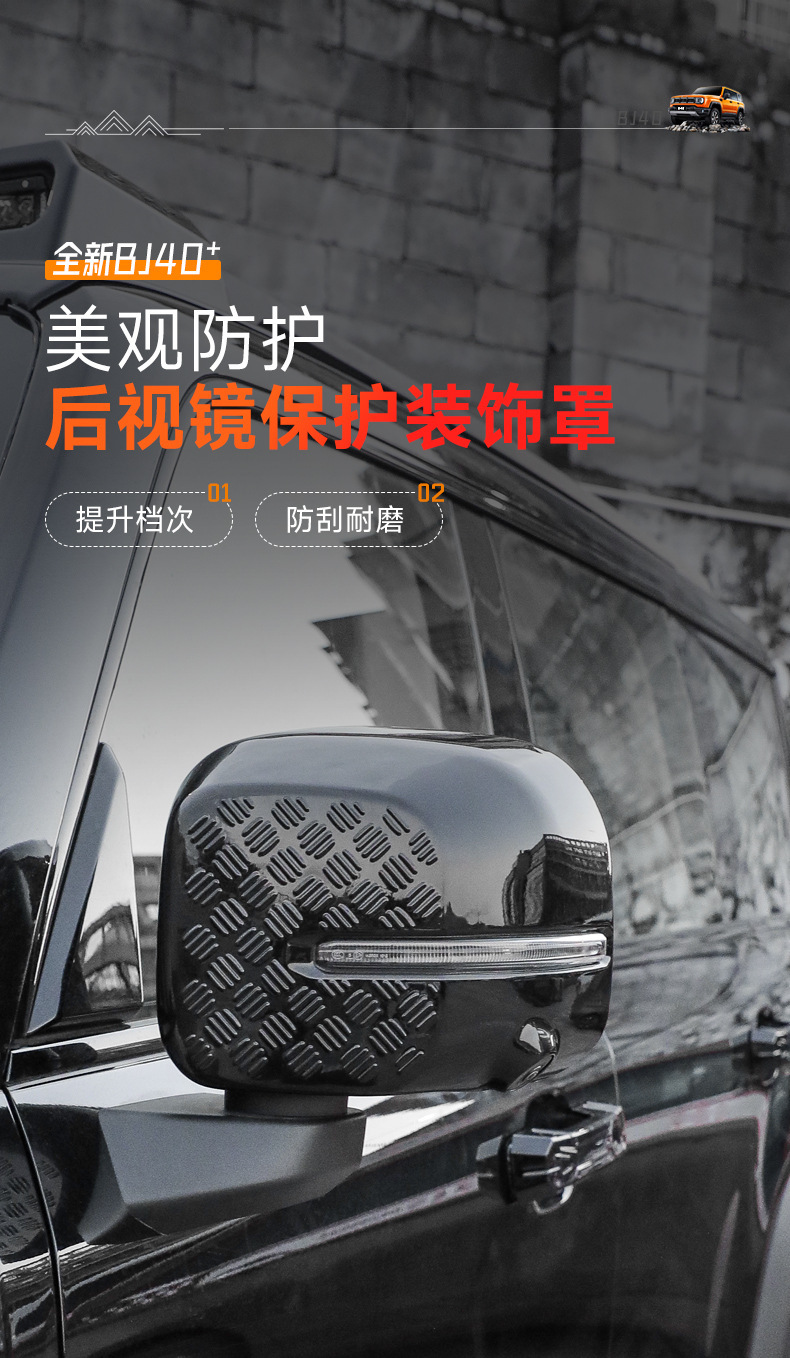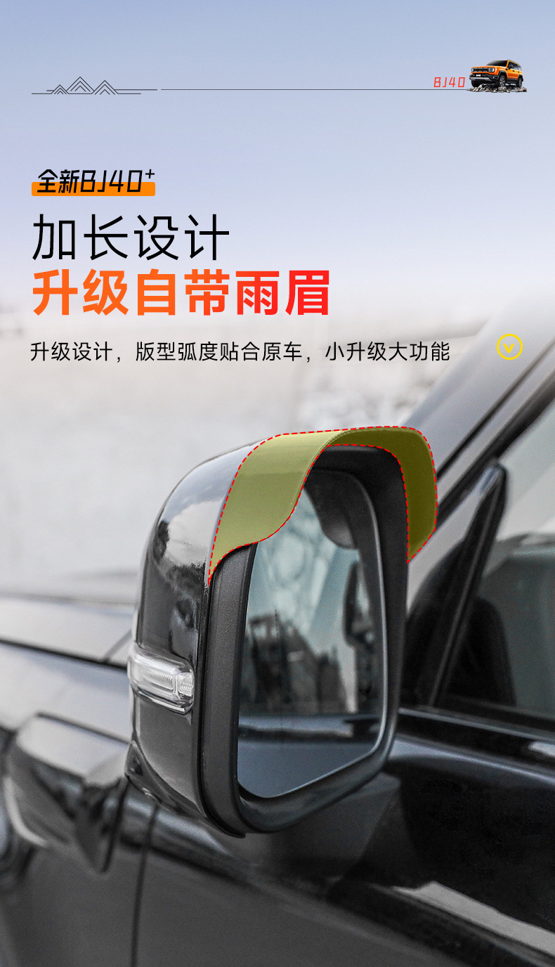 Tags: BJ40e accessories, car mirror protection, exterior trim kit, mirror cover trim, rain eyebrow guard, rearview mirror shell, side mirror housing