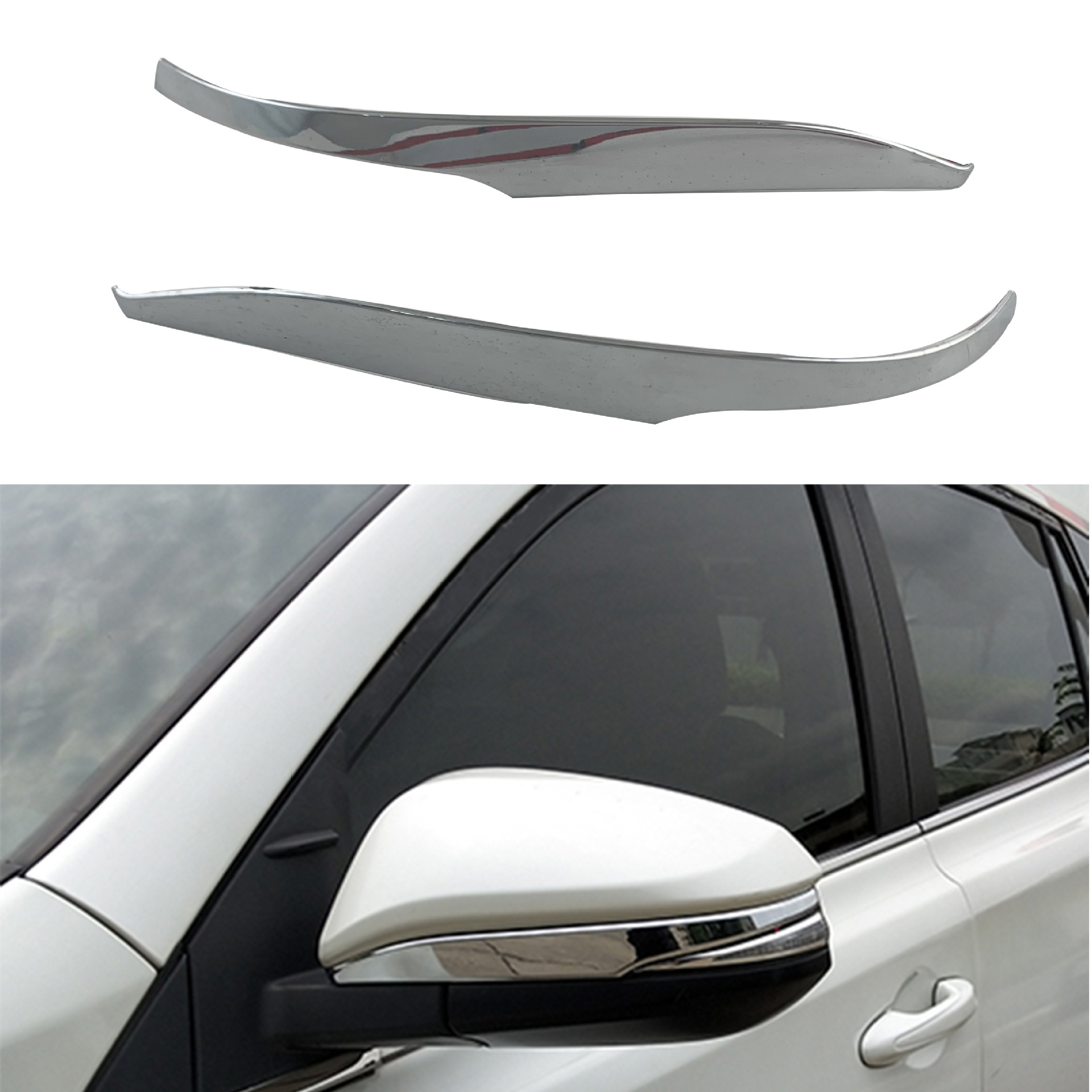 Tags: car exterior decoration, chrome mirror strip, rearview mirror garnish, rearview mirror molding, Side Mirror Trim, toyota highlander accessories