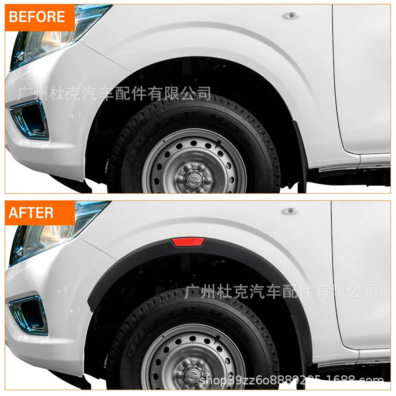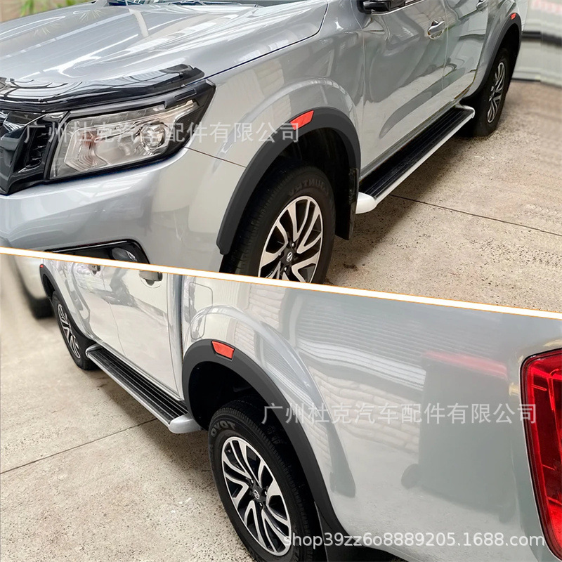 Tags: anti-collision guards, fender flares, mudguards, Nissan Navara accessories, truck exterior styling, wheel arch trim, wheel brow protector