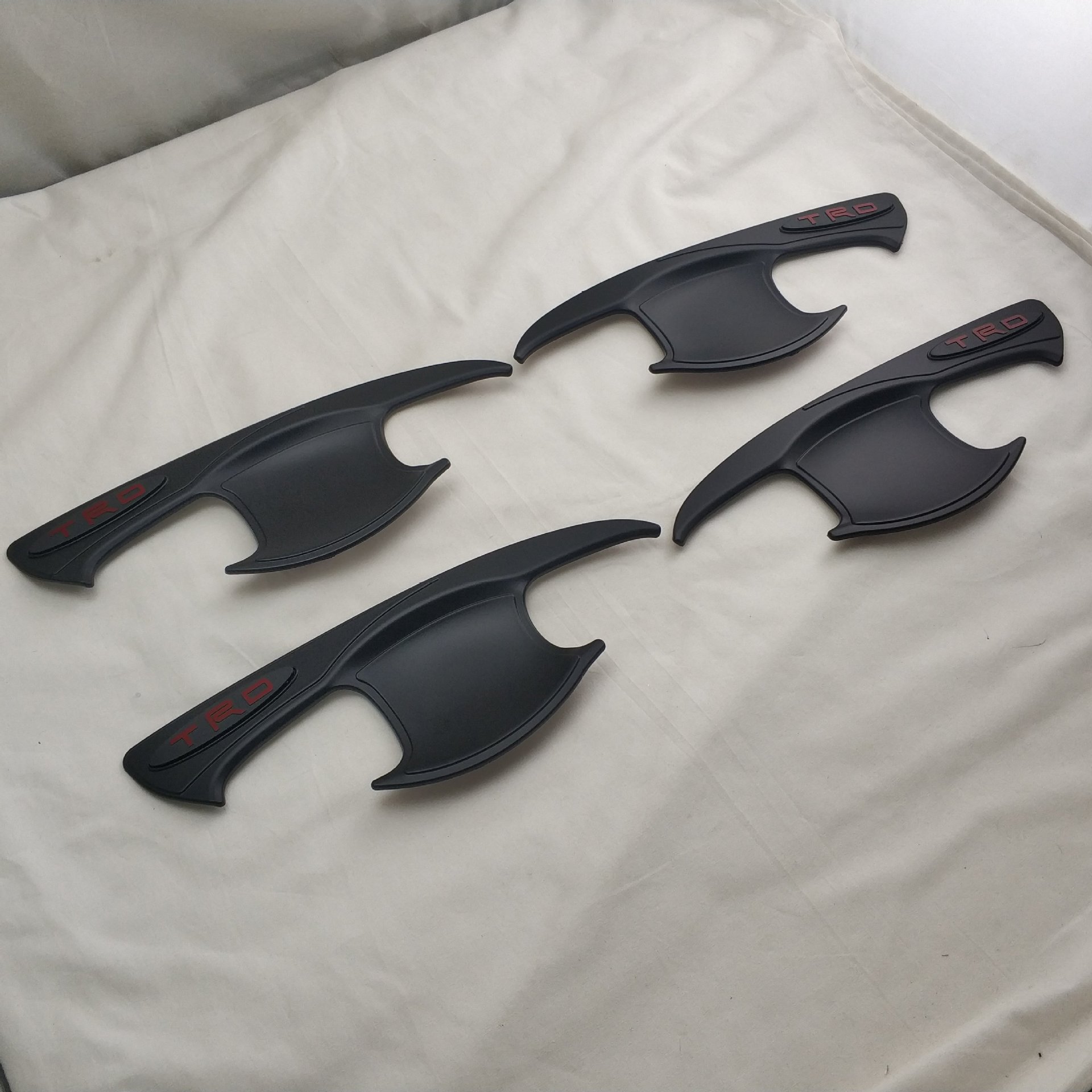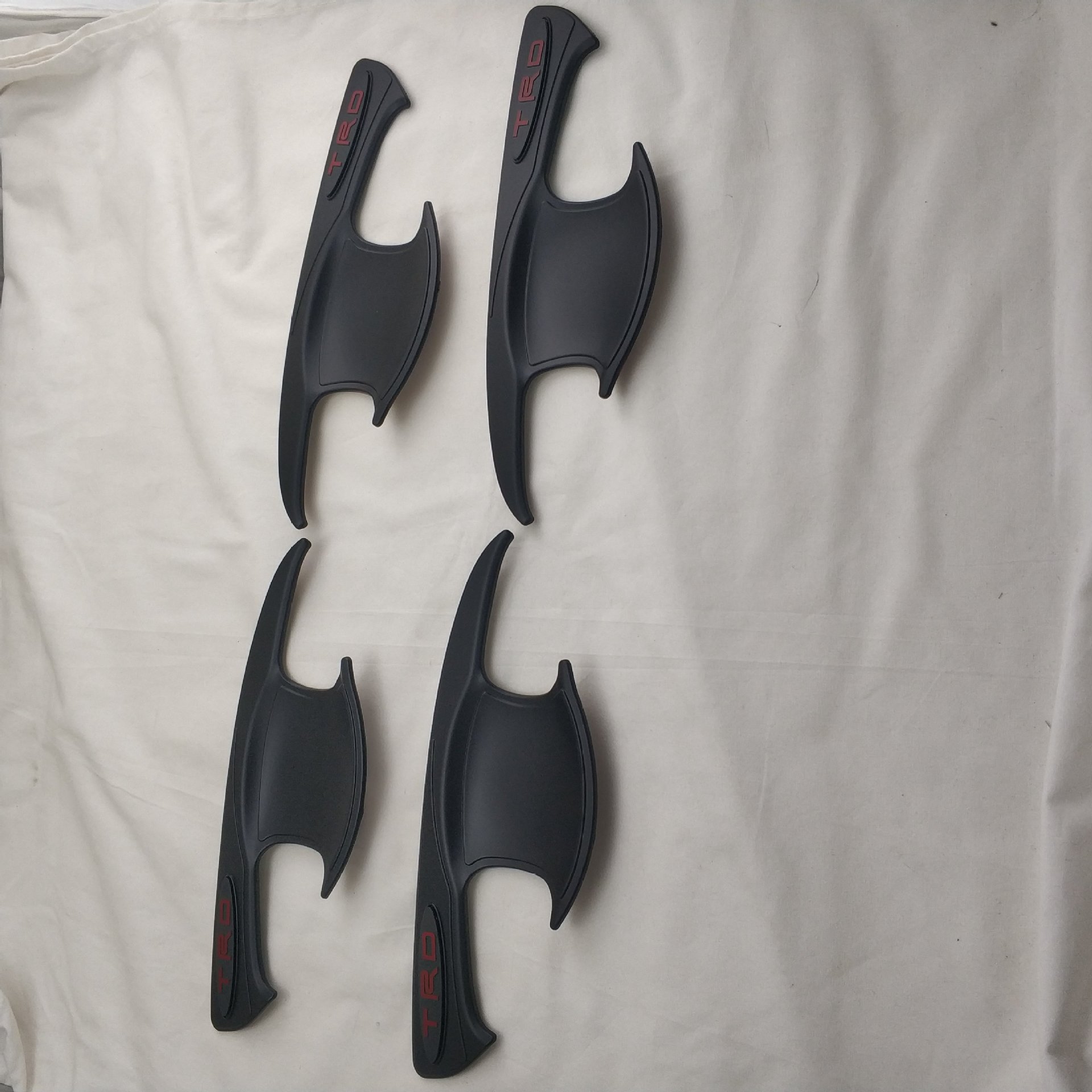 Tags: automotive scratch protection, car exterior trim, door handle bowl, Fortuner door guard, Hilux Revo accessories, red lettering trim, TRD decoration