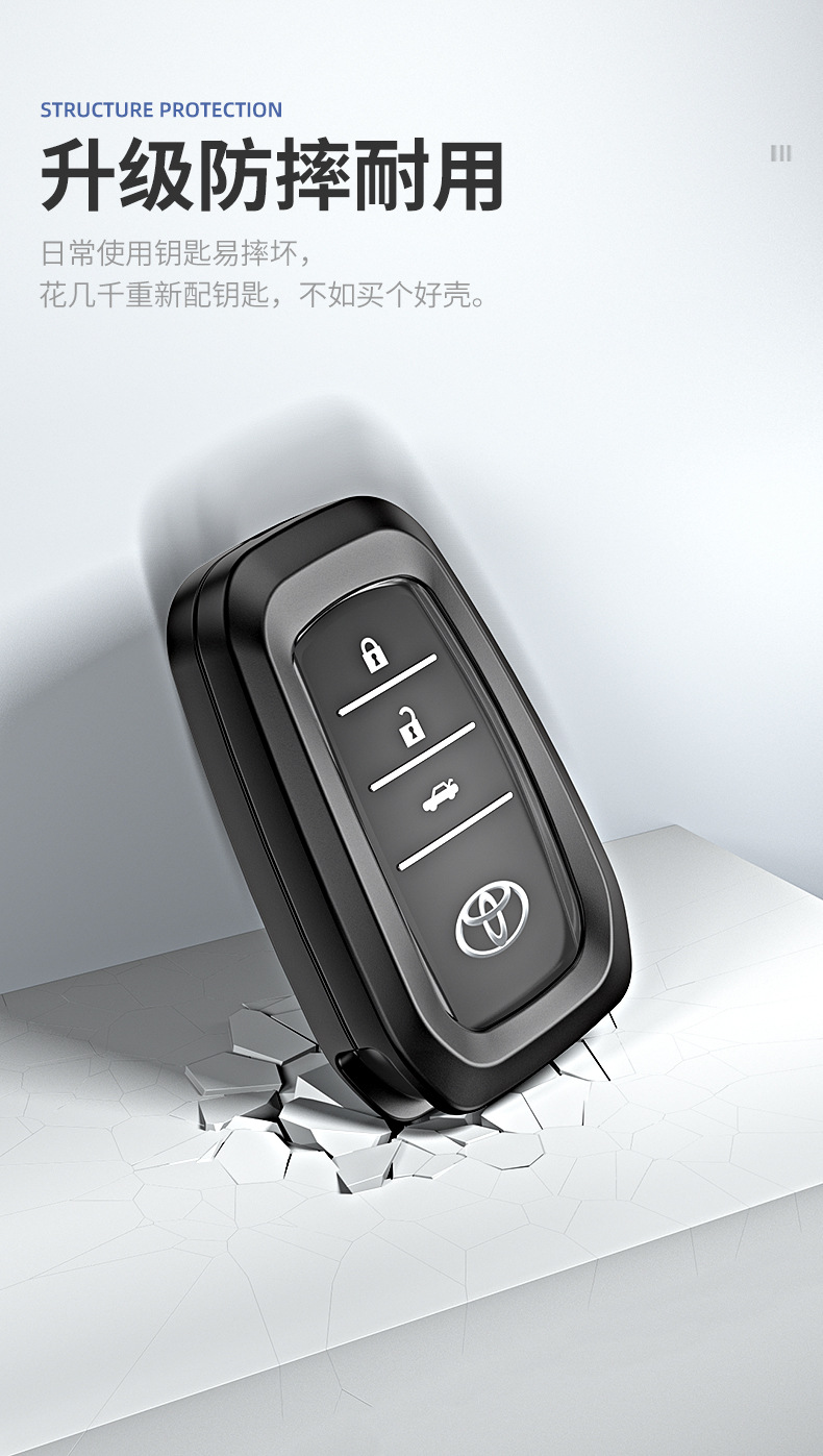 Protect your Toyota key fob with this full-coverage case. Compatible with Highlander, RAV4, and Camry. Durable, anti-scratch material ensures long-lasting use.