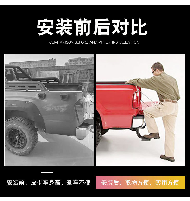 - Provides a convenient non-slip stepping surface for safer access to the pickup truck bed