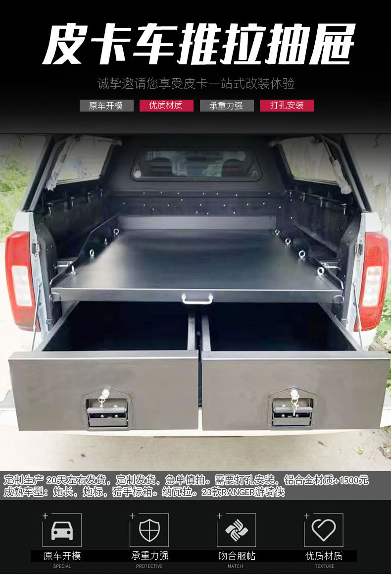 Retractable Truck Bed Slide-Out Tray Cargo Storage Box Shell for GWM Poer, Changan Hunter, and Ford Ranger