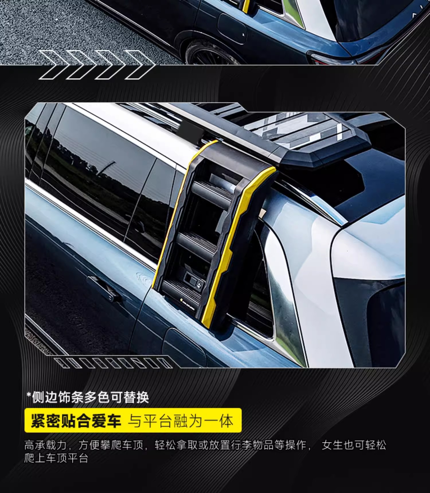 Tags: AITO M9 accessories, car side awning mount, cargo roof basket, exterior storage box, off-road roof gear, roof rack platform, side ladder carrier