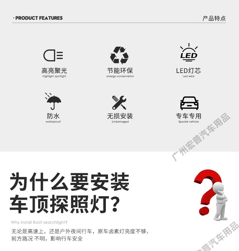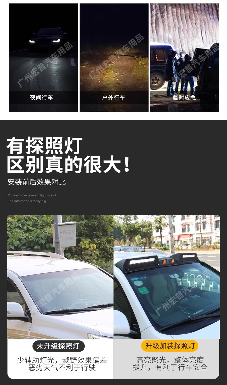 Tags: decorative car lights, LED auxiliary light, off-road searchlight, roof spotlights, SUV exterior accessories, vehicle roof lamp