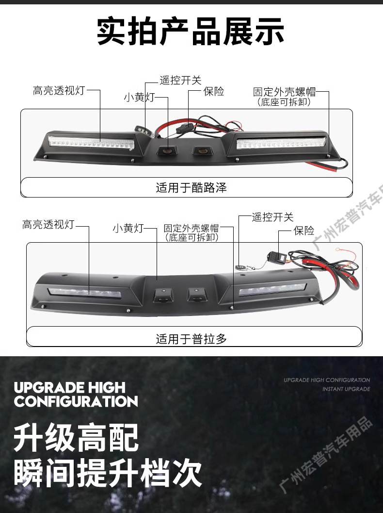 - High-intensity LED illumination provides enhanced visibility for night driving and off-road explorations.