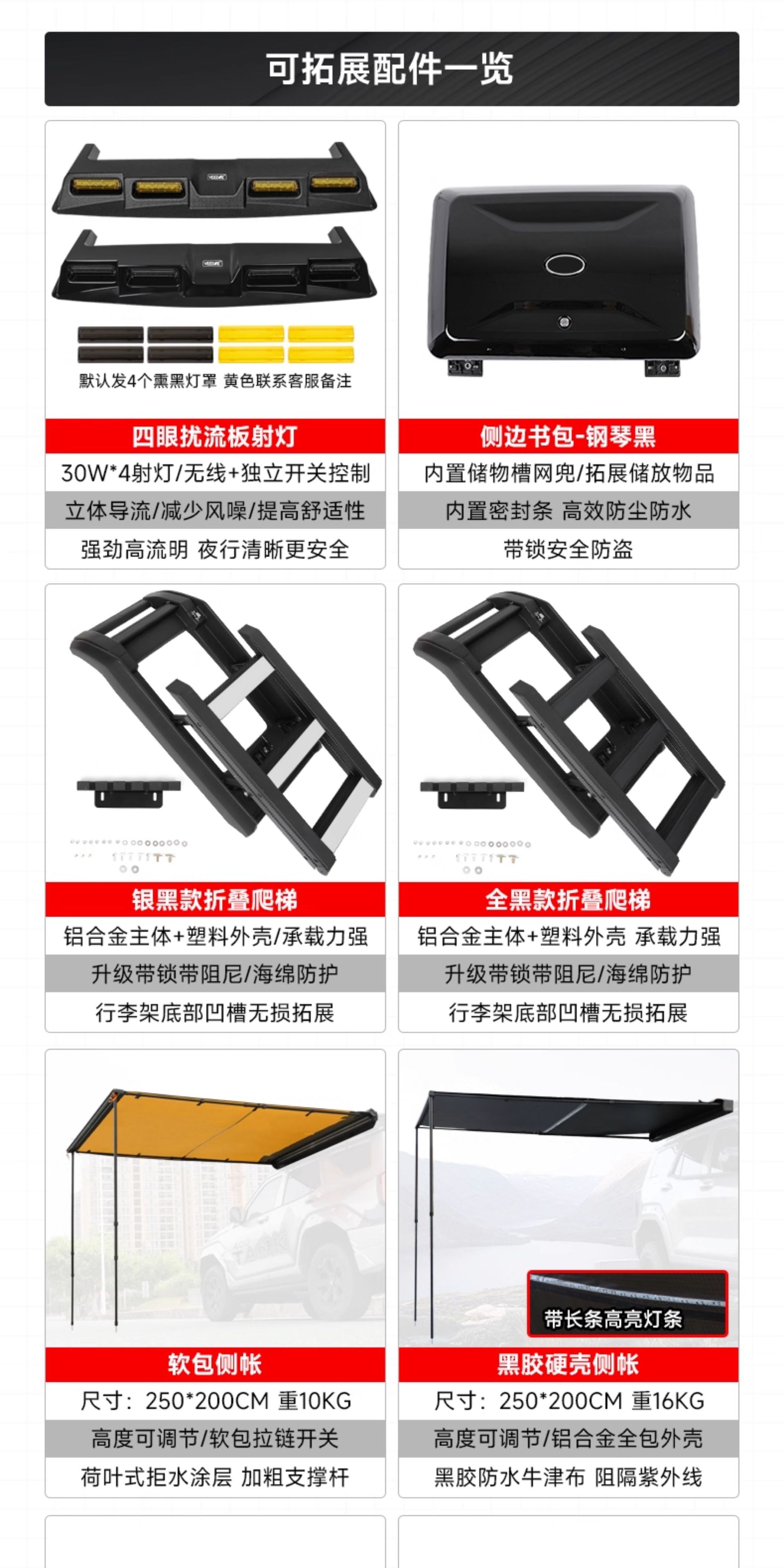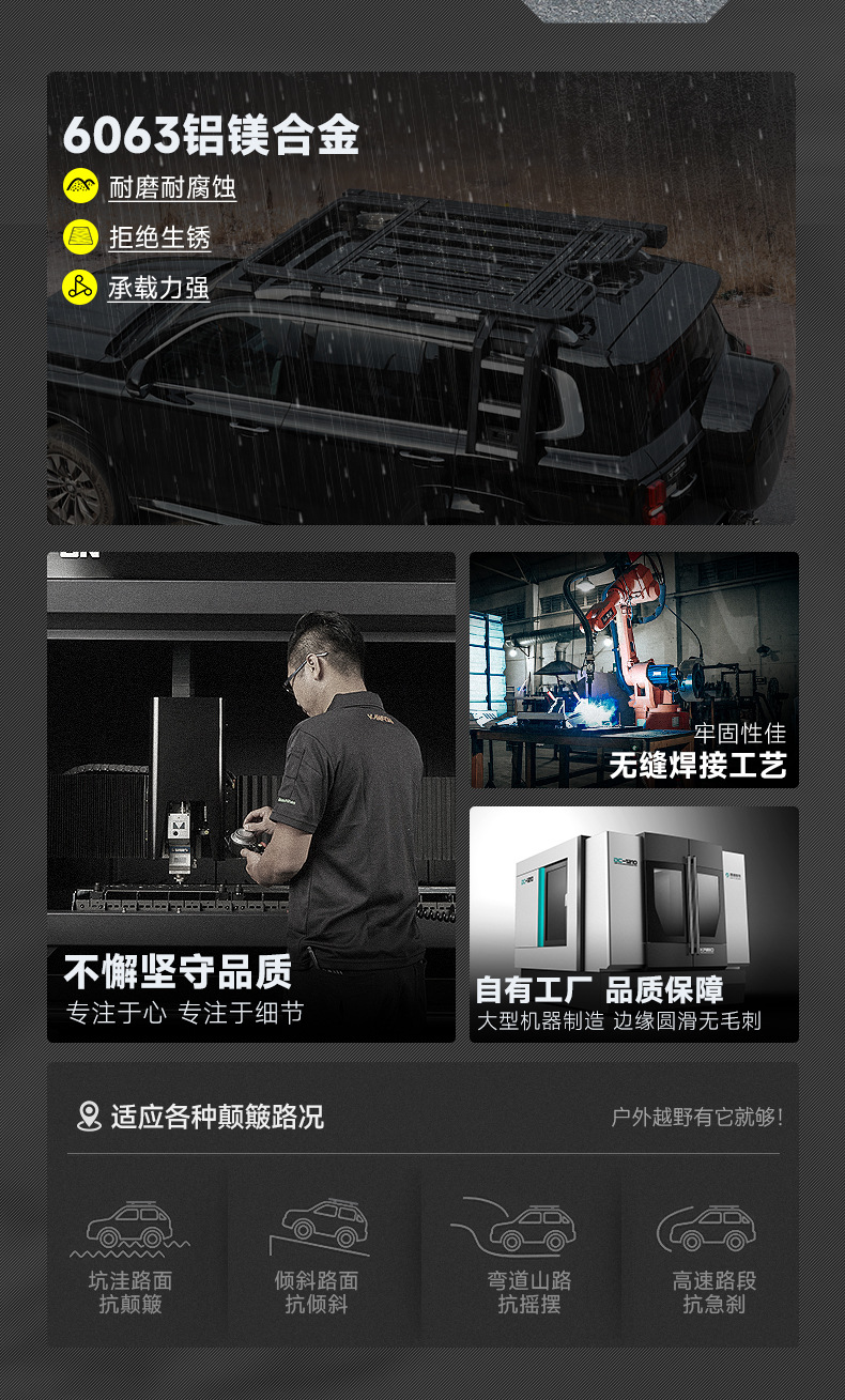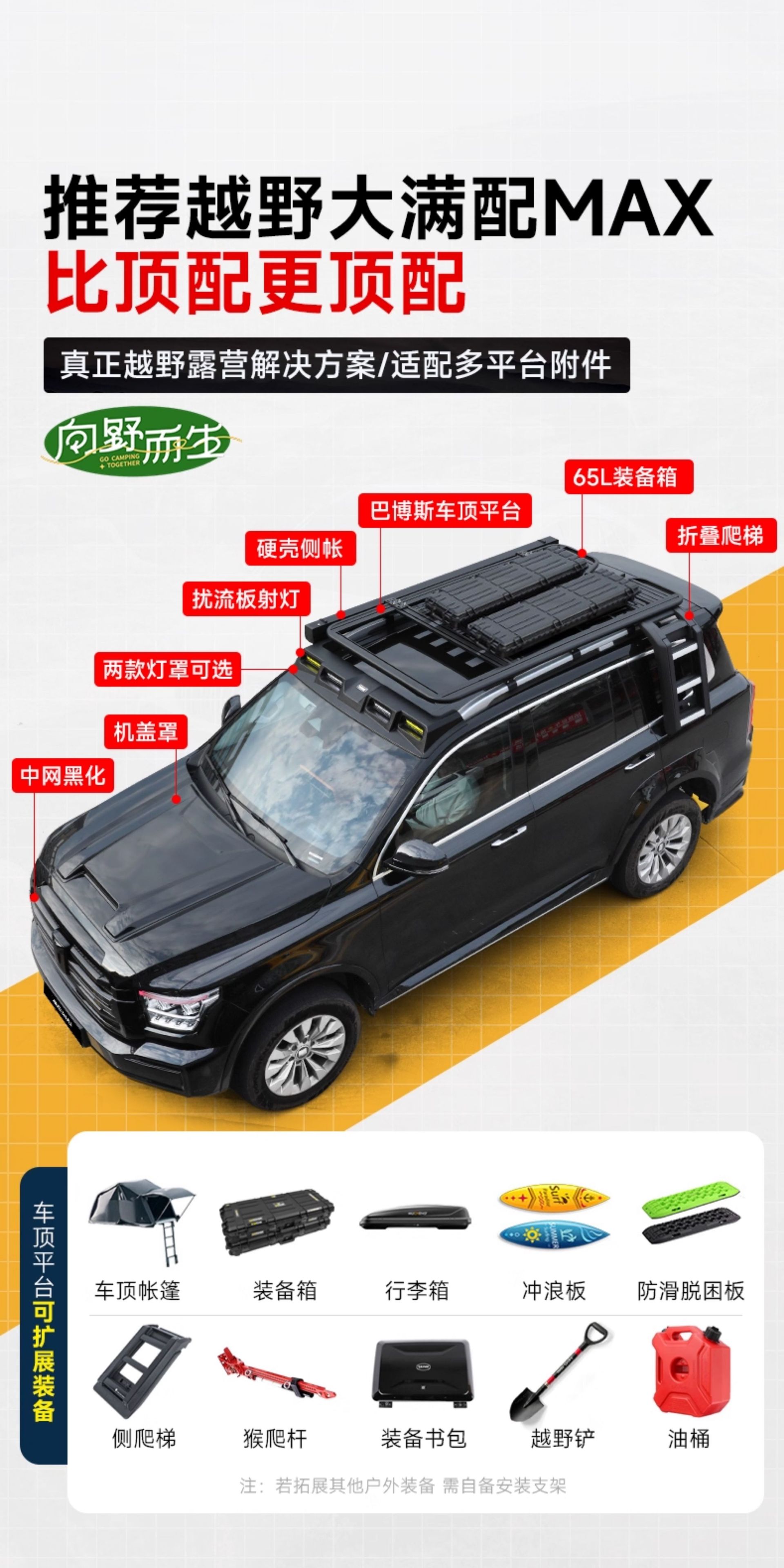 - High-capacity storage framework expands your vehicle’s cargo potential for camping and long-distance travel.