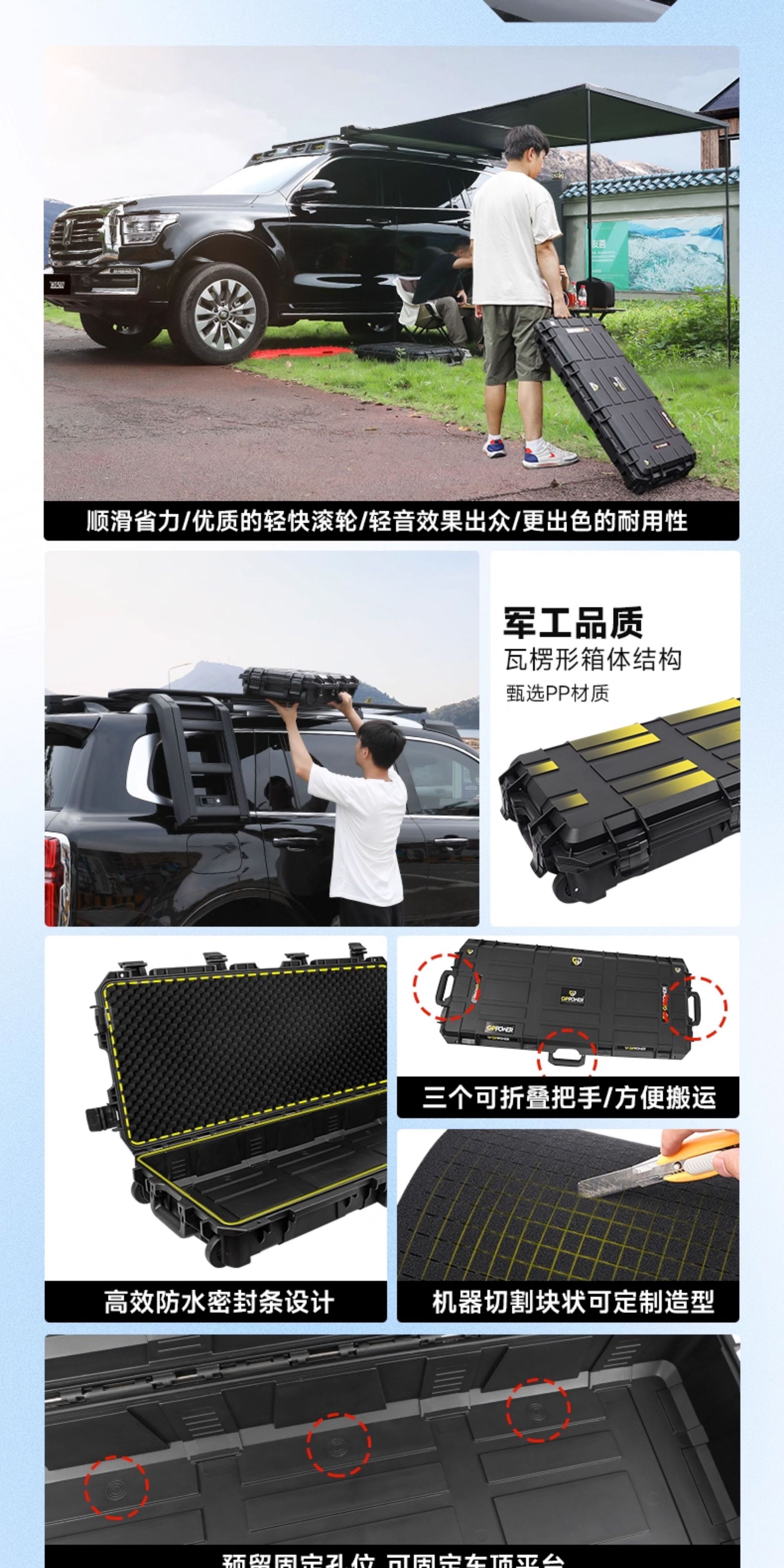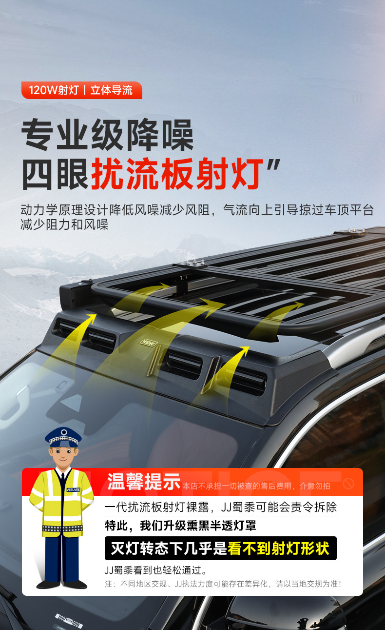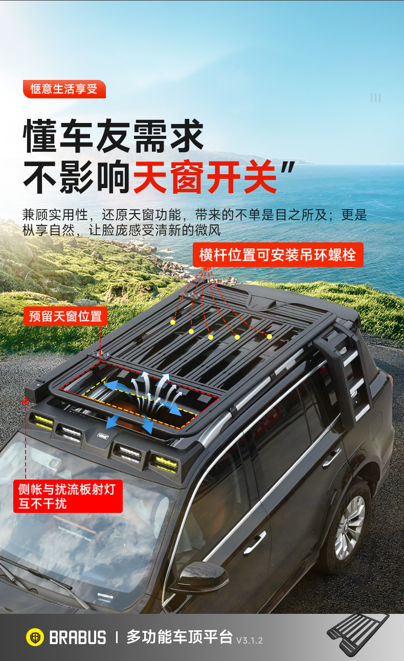 - Aerodynamic modular platform design reduces wind noise and allows for easy expansion of outdoor equipment.