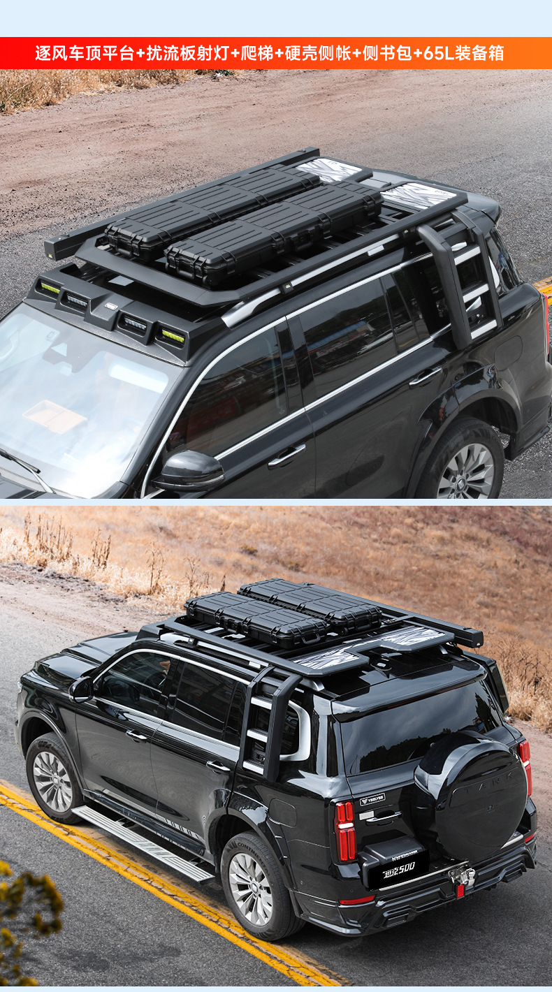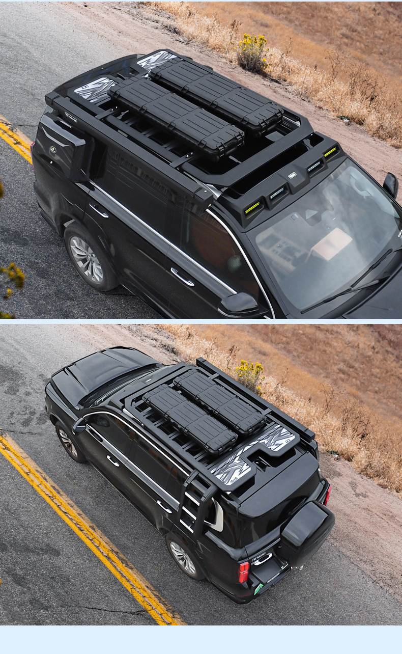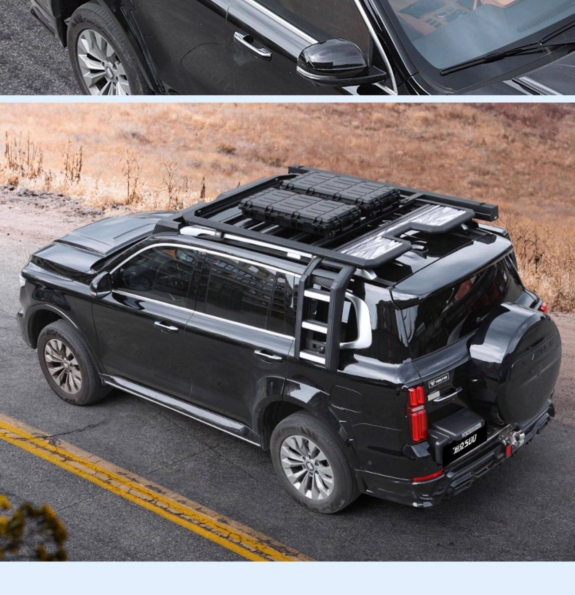 Upgrade your Jetour Traveller with this heavy-duty roof rack cargo basket featuring a folding ladder and side awning platform for ultimate off-road storage.