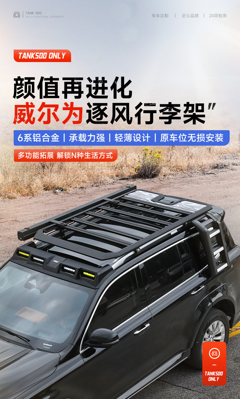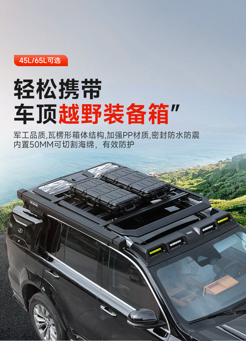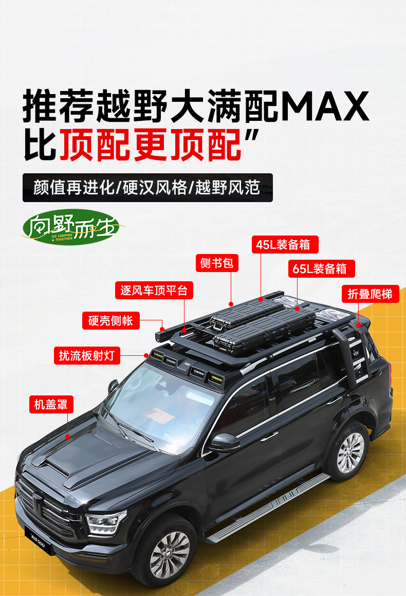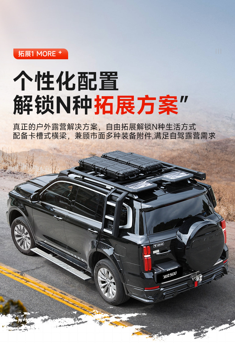 Upgrade your Jetour Traveller with this heavy-duty roof rack cargo basket featuring a folding ladder and side awning platform for ultimate off-road storage.