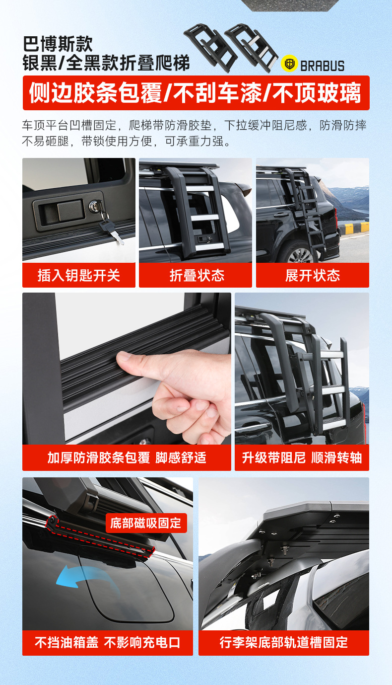 Tags: car camping gear, exterior folding ladder, exterior luggage carrier, off-road roof storage, roof cargo basket, roof rack platform, vehicle side awning