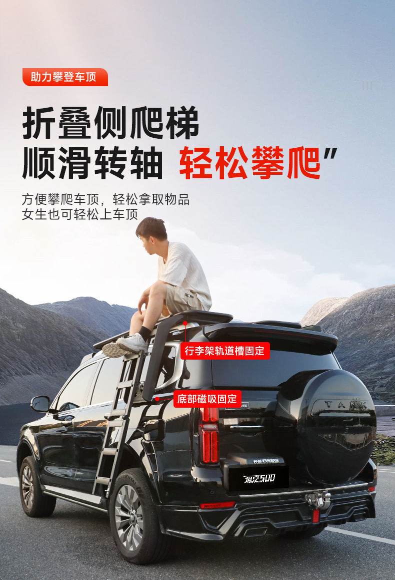 - Integrated folding side ladder provides convenient access to the roof platform while maintaining an aerodynamic profile when closed.