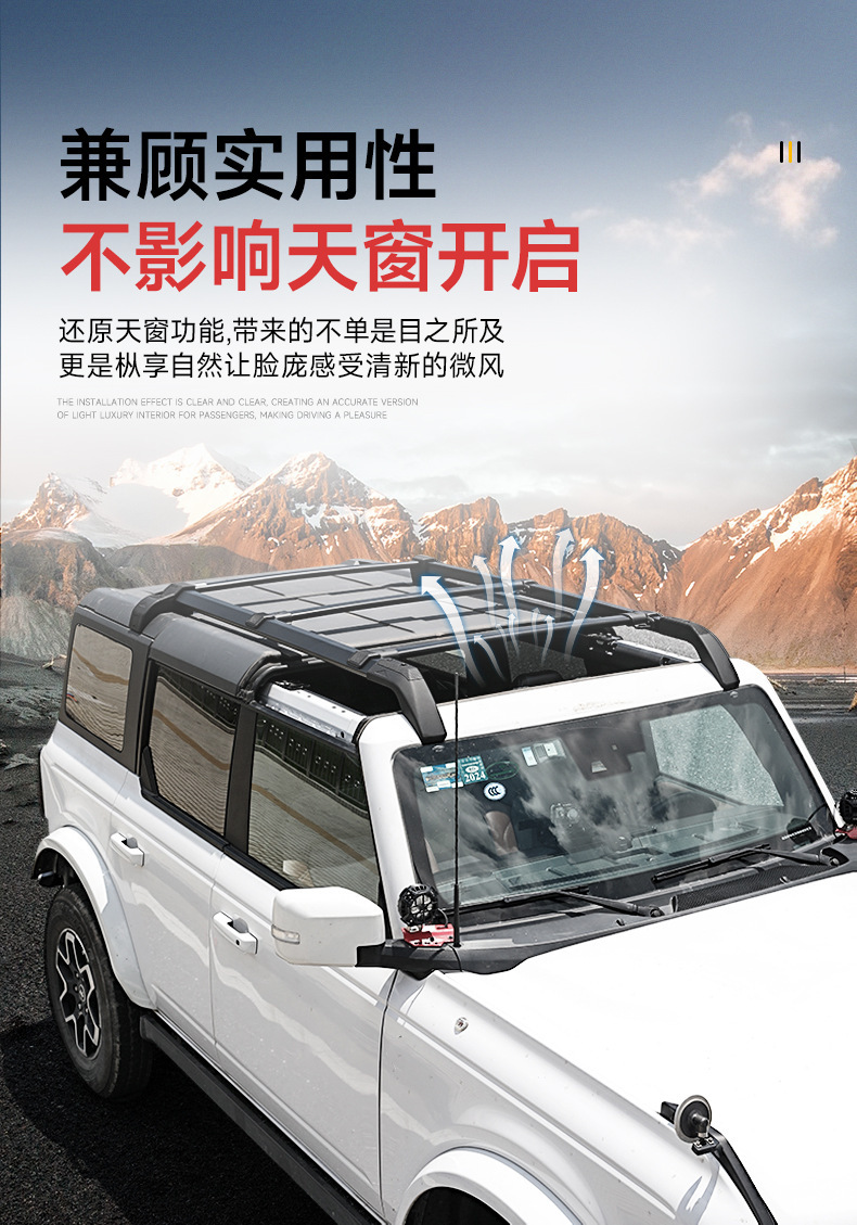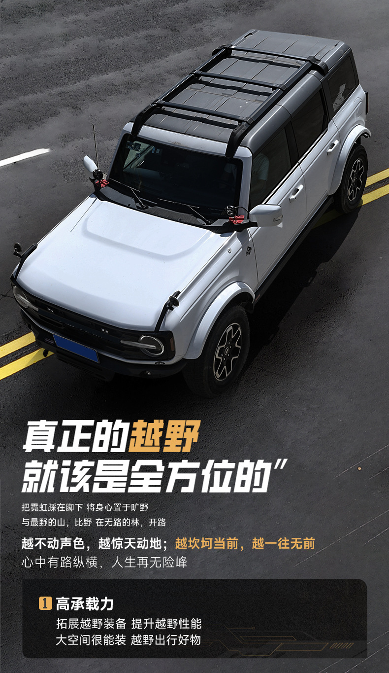 Tags: bronco cargo carrier, hardtop rack system, off-road storage solution, roof rack crossbars, rooftop luggage platform, vehicle roof rails