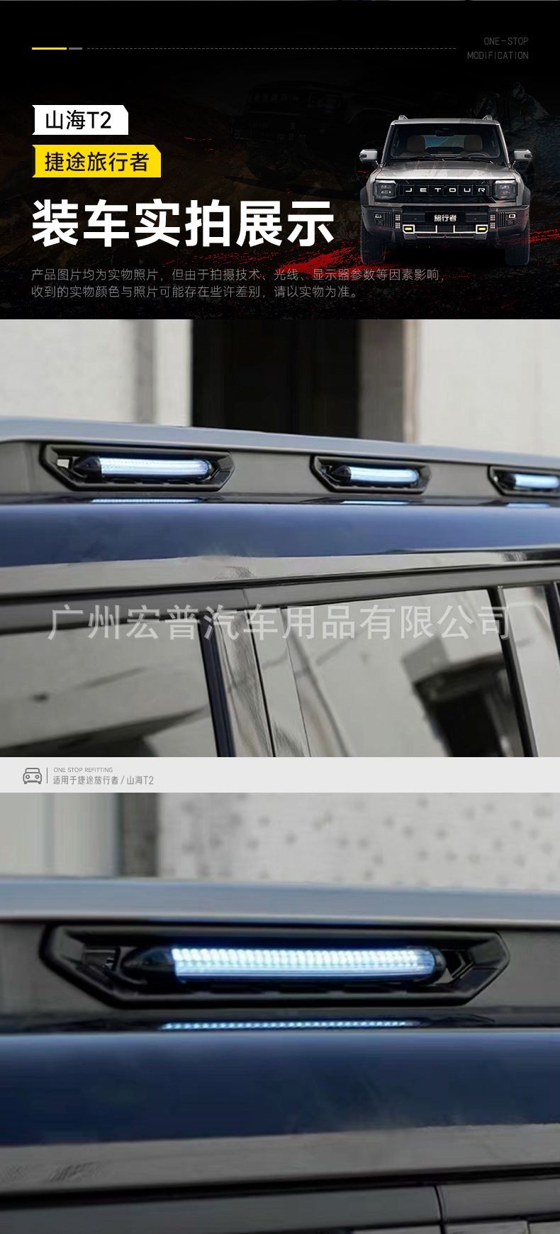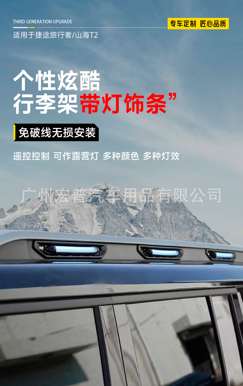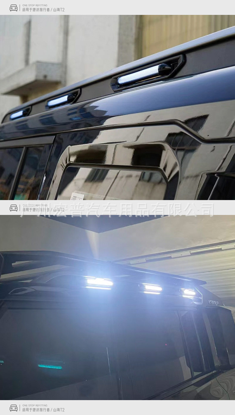 Enhance your Jetour Traveler T2 with this LED roof rack decorative strip. Perfect for camping and night visibility, this durable accessory adds style and light.