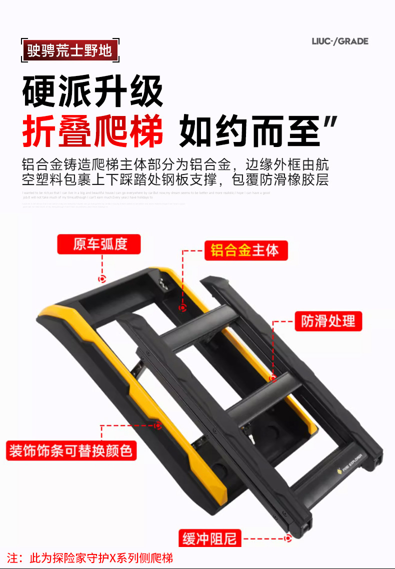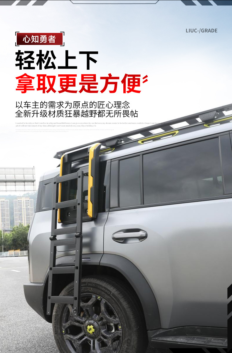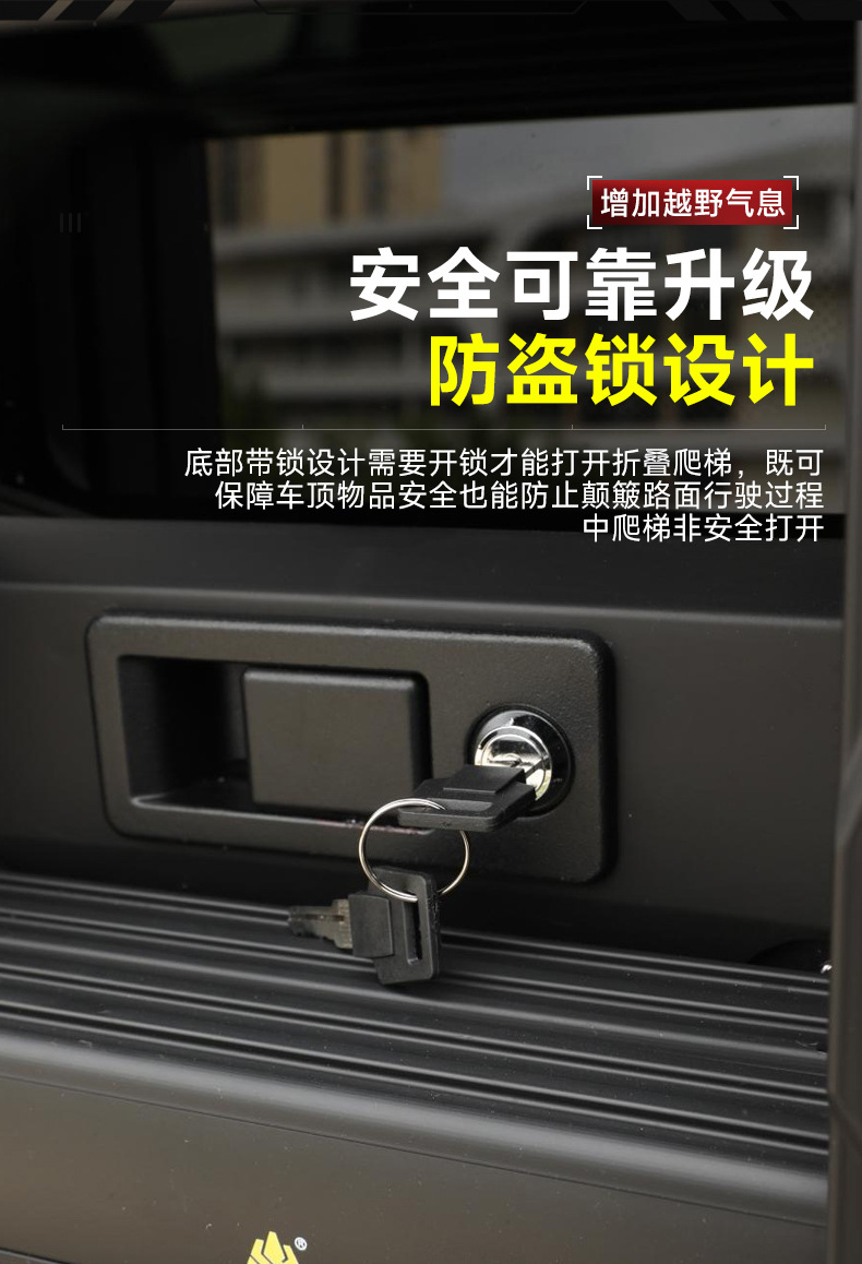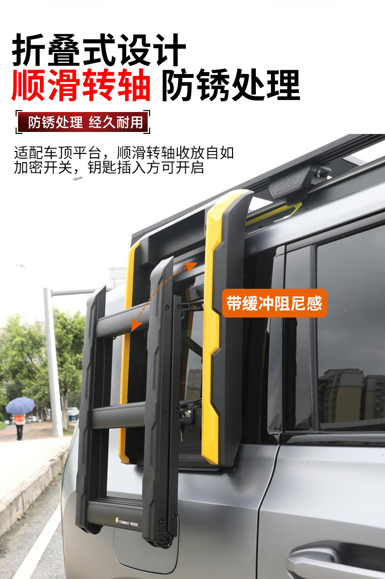 Tags: aluminum ladder for SUV, car exterior accessories, off-road side ladder, roof ladder, side folding ladder, vehicle roof access