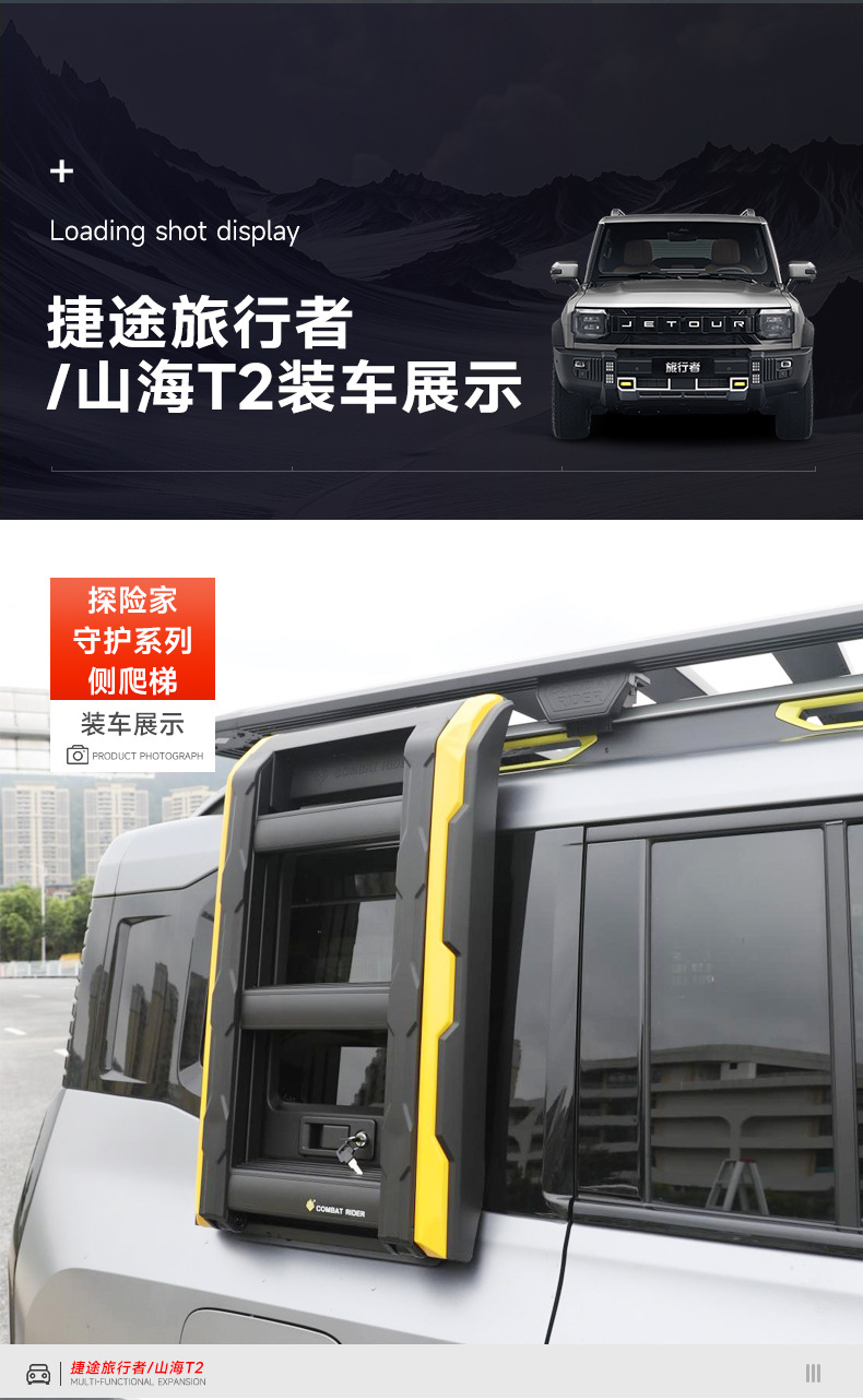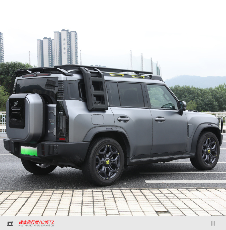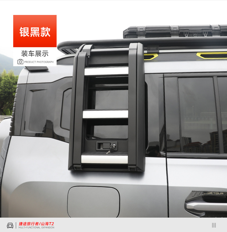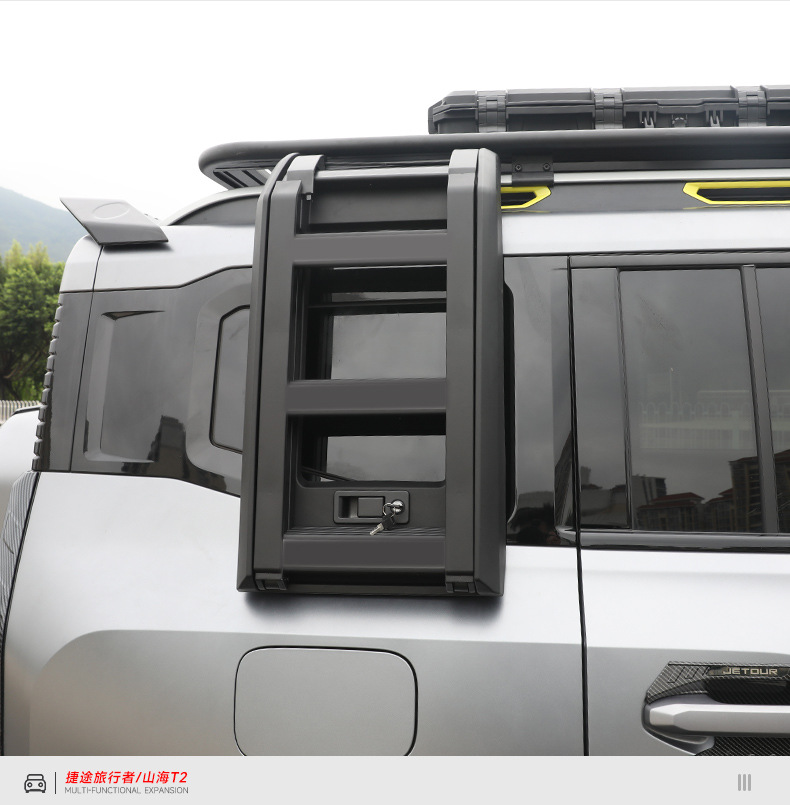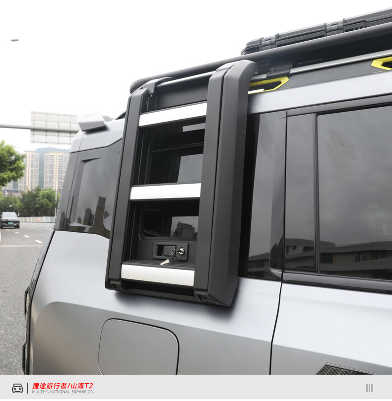 Upgrade your Jetour Traveler Shanhai T2 with this durable aluminum alloy roof side folding ladder. Designed for easy access and robust exterior performance.