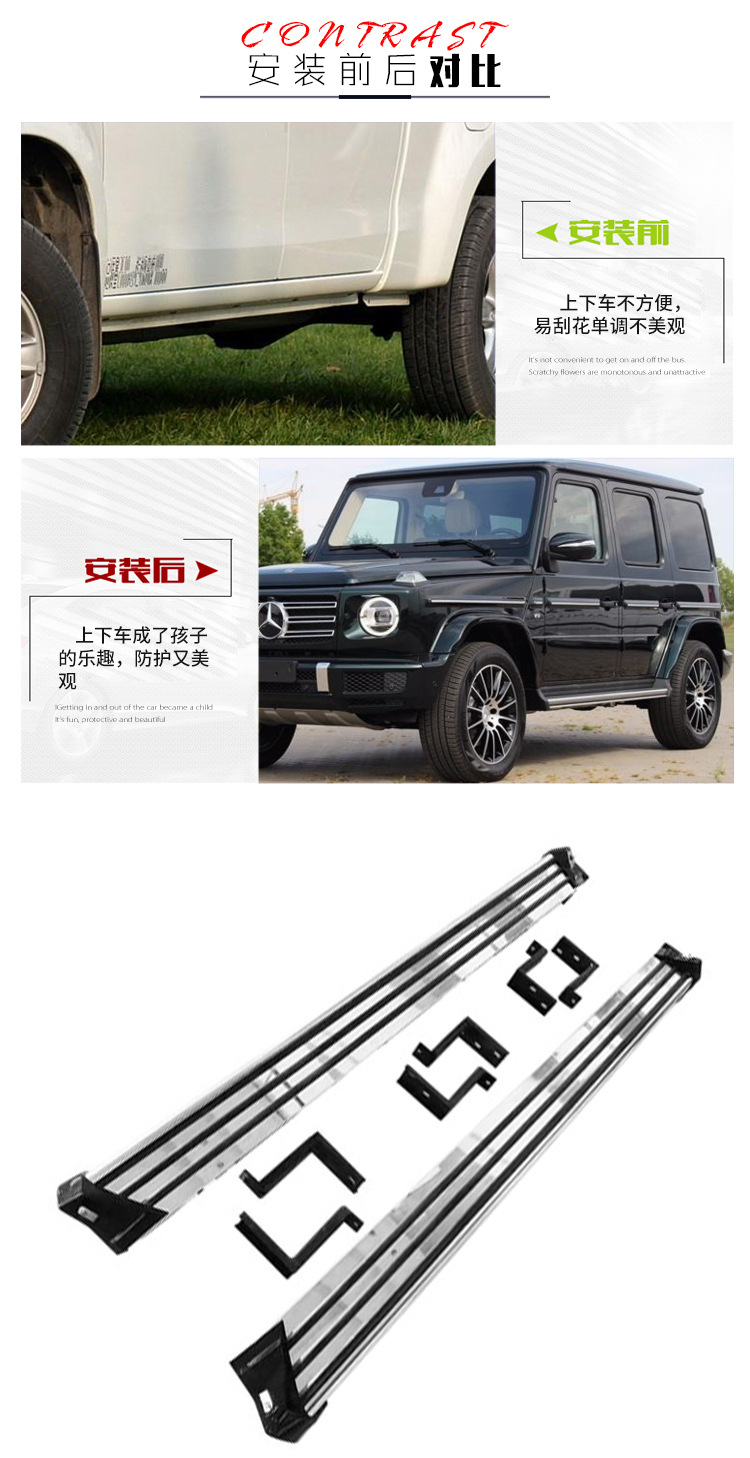 - Precision-engineered side steps specifically designed for Mercedes-Benz G-Class models ensuring a flush and integrated look.