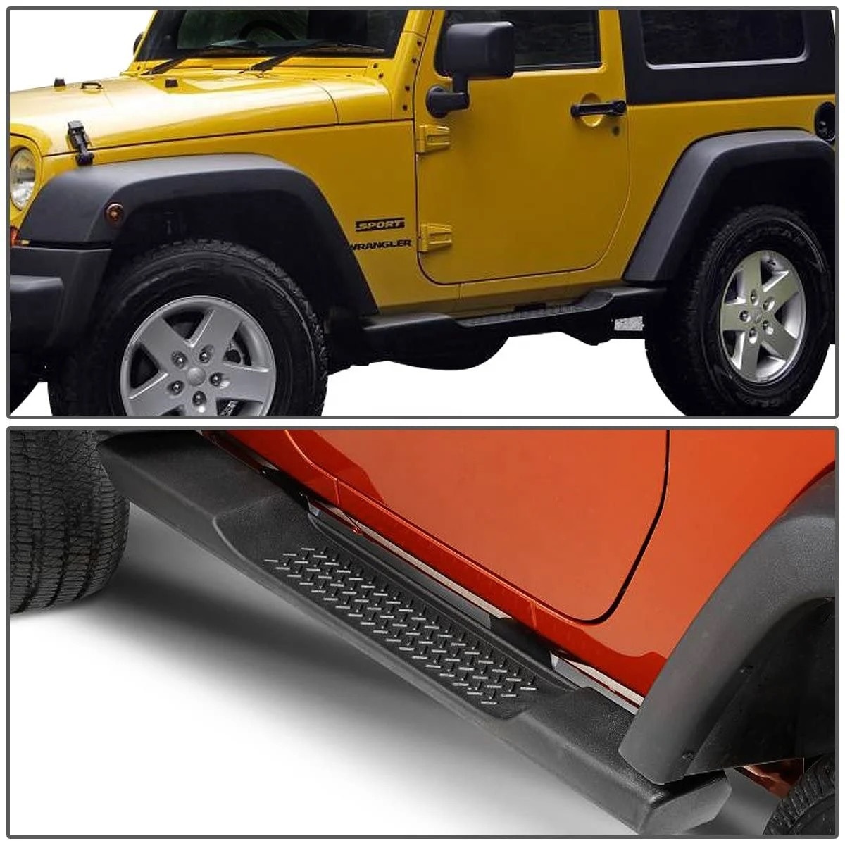 Upgrade your Jeep Wrangler JK or JL with durable running boards. These side steps provide easy access and extra body protection for 2-door and 4-door models.