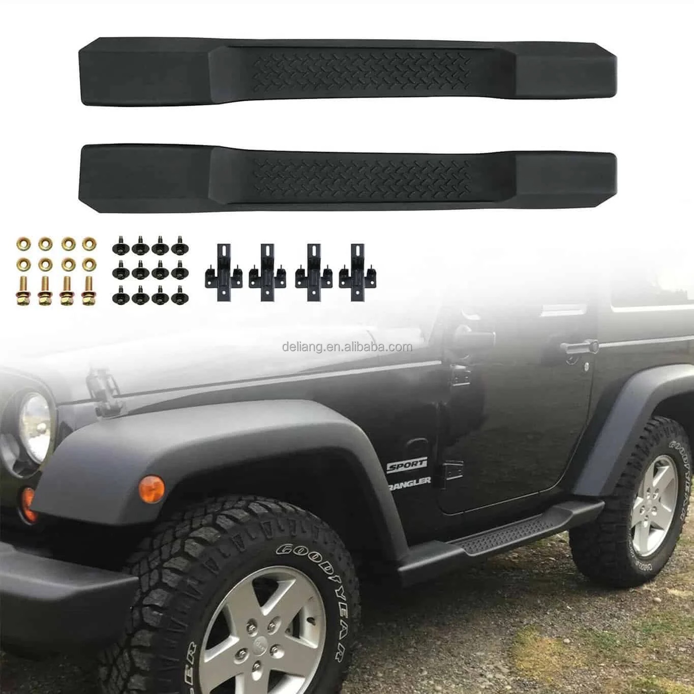 Tags: exterior step rail, jeep wrangler pedals, nerf bars, rock sliders, running boards, side steps, vehicle entry steps