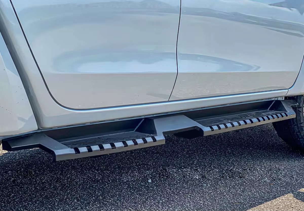 Upgrade your pickup with premium anti-slip running boards. Durable side steps designed for Revo, Vigo, Ranger, and D-Max models. Enhanced safety and protection.