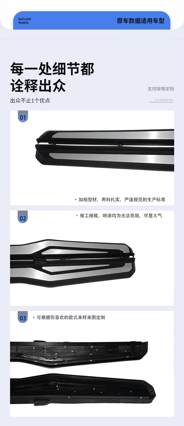 Tags: aluminum footboards, automotive entry guards, car exterior accessories, nerf bars, running boards, side steps, step rails