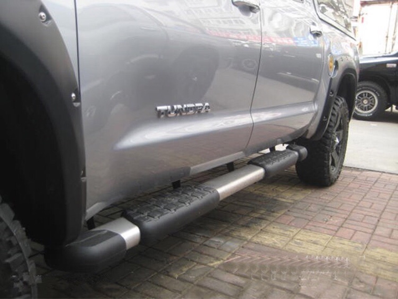 Upgrade your Toyota Tundra with these high-quality OE style side steps. Provides a secure non-slip stepping surface and durable protection for your vehicle sides.