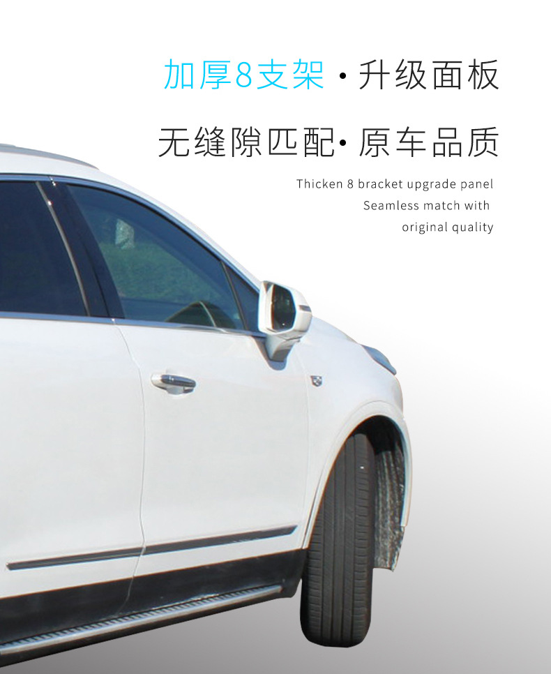 Upgrade your SUV with durable aluminum running boards compatible with Cadillac XT4, XT5, and XT6. Enhance accessibility and side protection with easy installation.