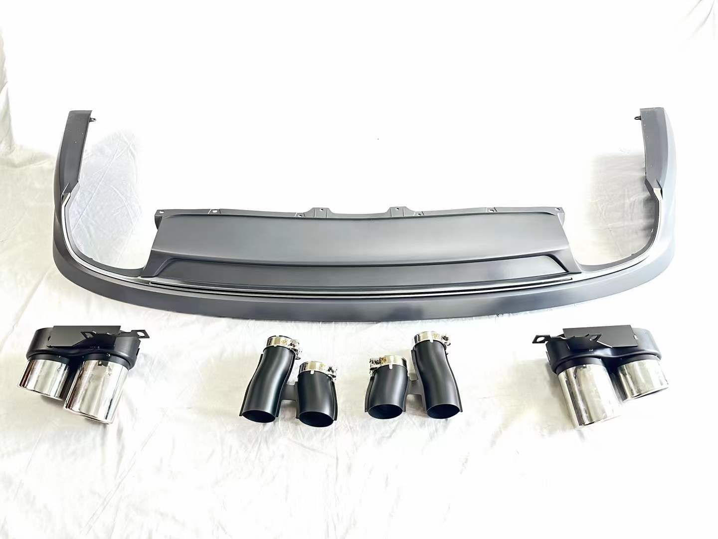 Upgrade your Audi A8 D4 (2011-2017) with this S8 style rear bumper lip diffuser and quad exhaust tips. Durable ABS construction for a sporty, premium appearance.