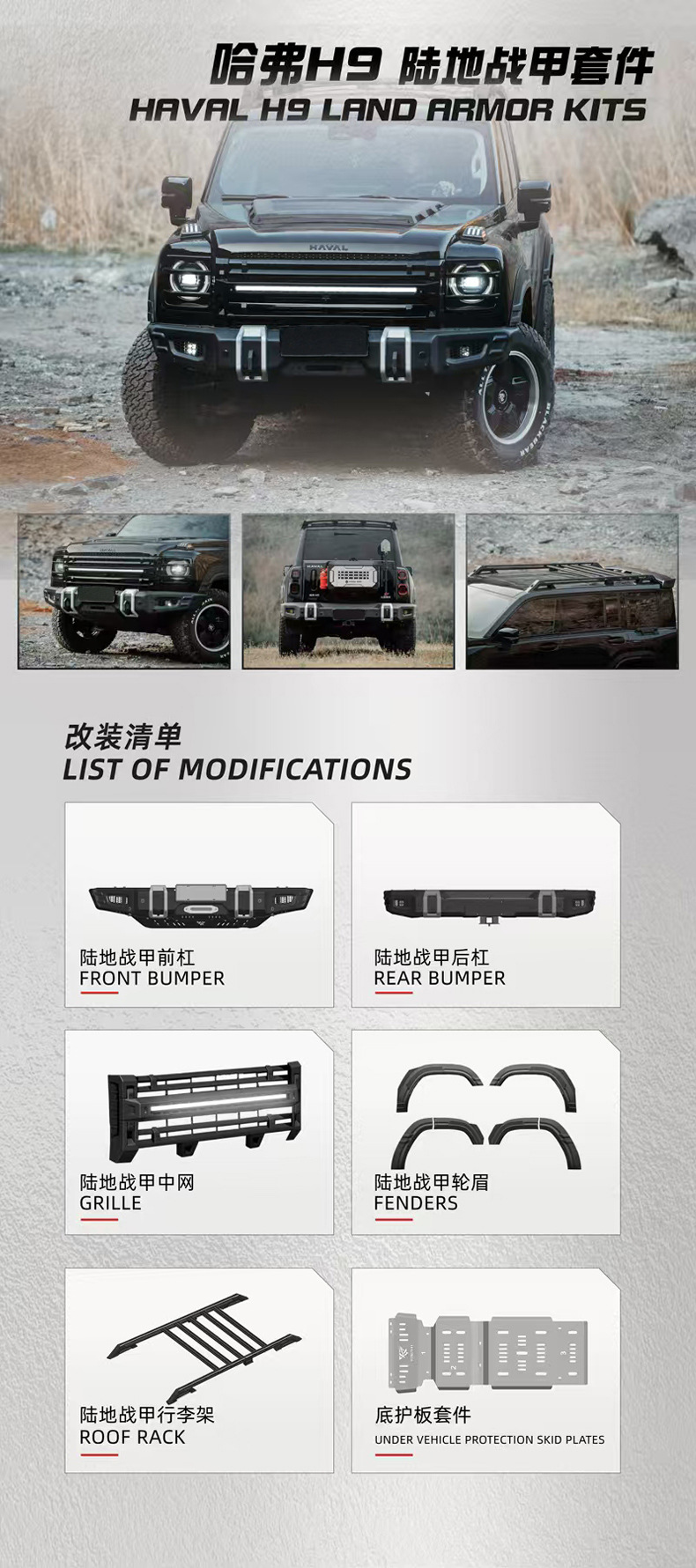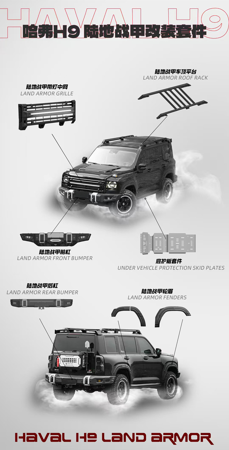 Second-Generation Haval H9 Land Armor Surround Kit Modified Roof Rack Platform Grille Front Bumper Rear Bumper Wheel Arches